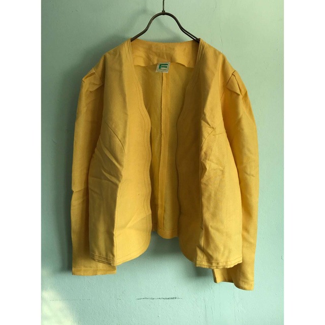 激レア rare West Germany made dead stock yellow cardigan jacket / ladies, used - ユーロ古着 西ドイツ製 80年代以前 ヴィンテージ デッドストック 薄手 ジャケット カーディガン レディース ゆったり オーバーサイズ フリー XL シール付き ビンテージ