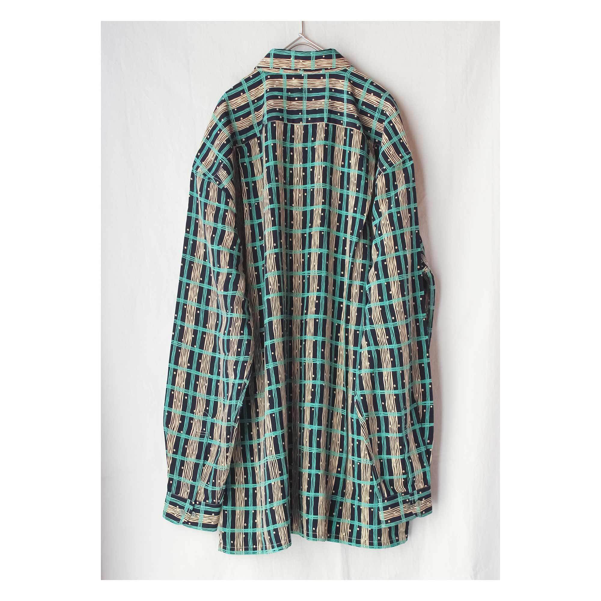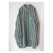 【 美品 ★ チェック柄 】 Navy X Green plaid shirt / mens, used - ネイビー × 緑 × オフホワイト 総柄シャツ BDシャツ ゆったり オーバーサイズ 長袖 メンズ XL XXL 古着