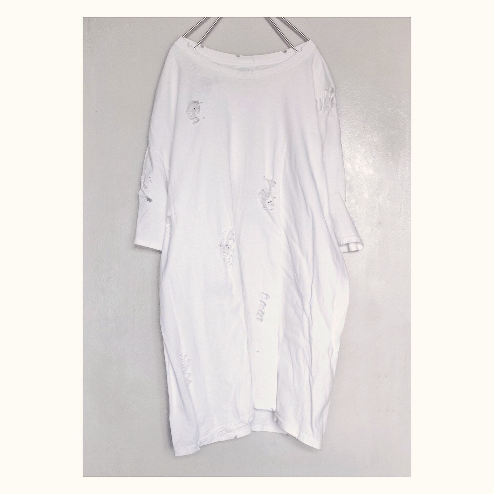 【 ダメージ加工 】 damege T-shirt / mens ladies, used - 穴あき ヴィンテージ加工 GILDAN 白Tシャツ XL XXL ゆったり オーバーサイズ メンズ レディース フェス ストリート 古着