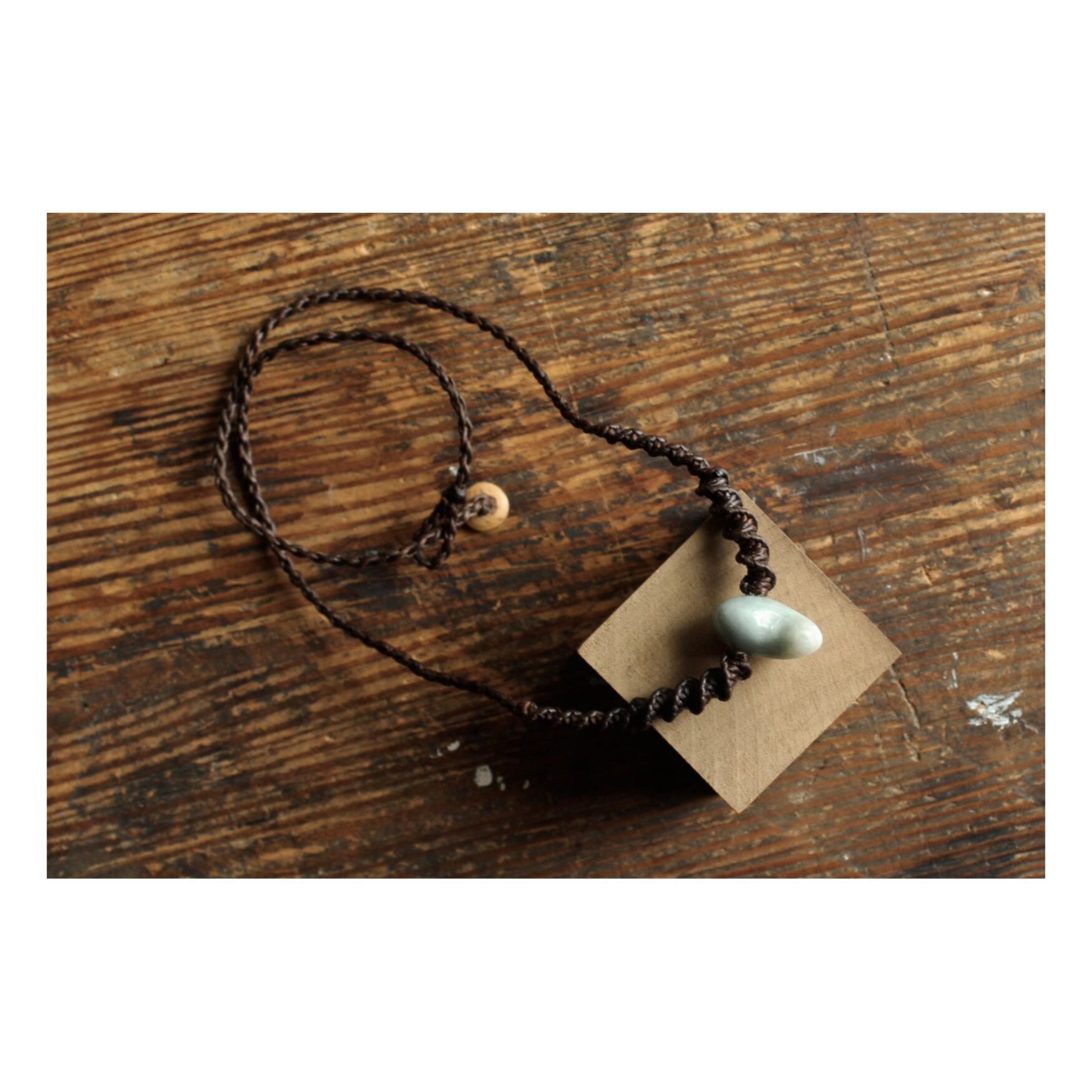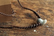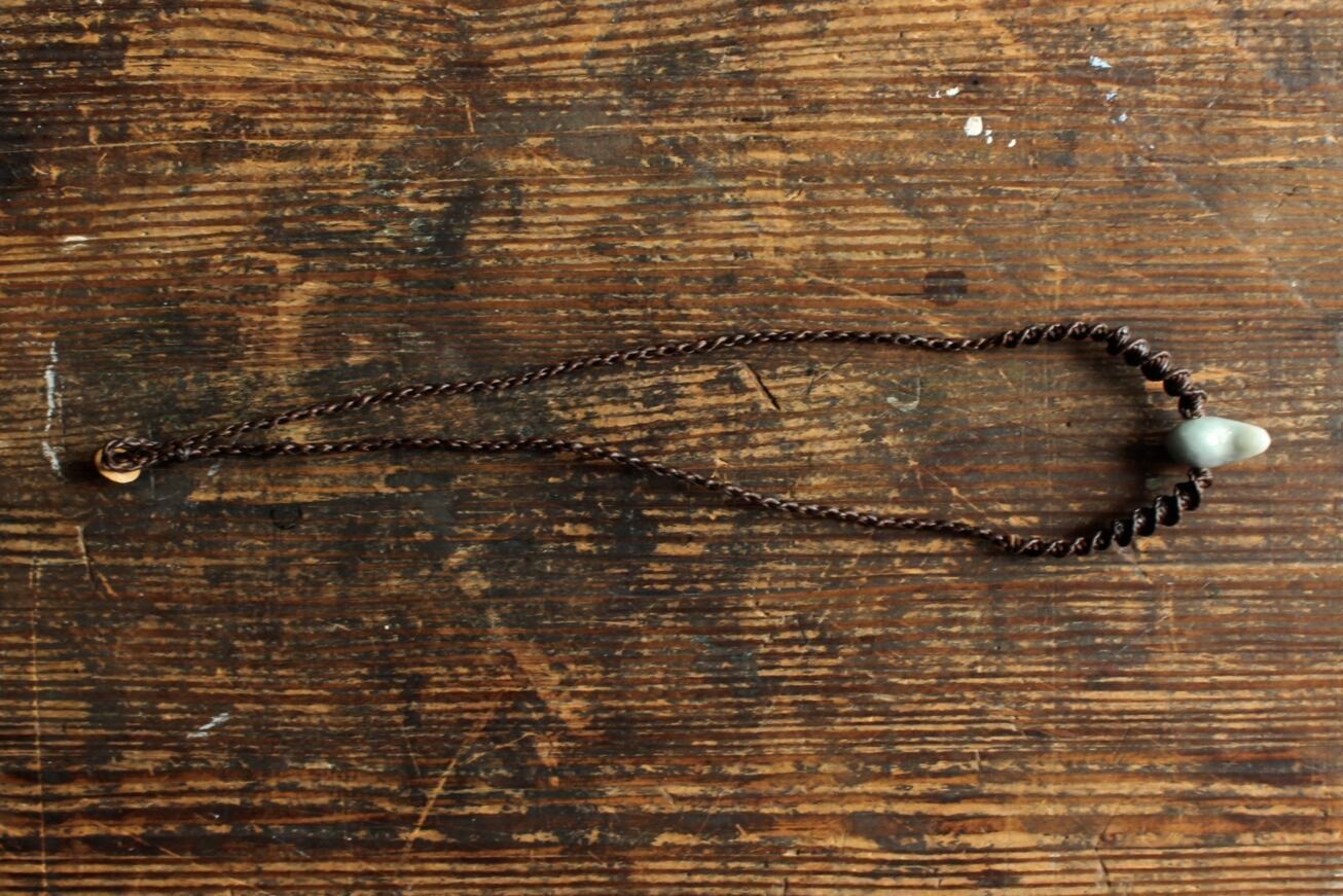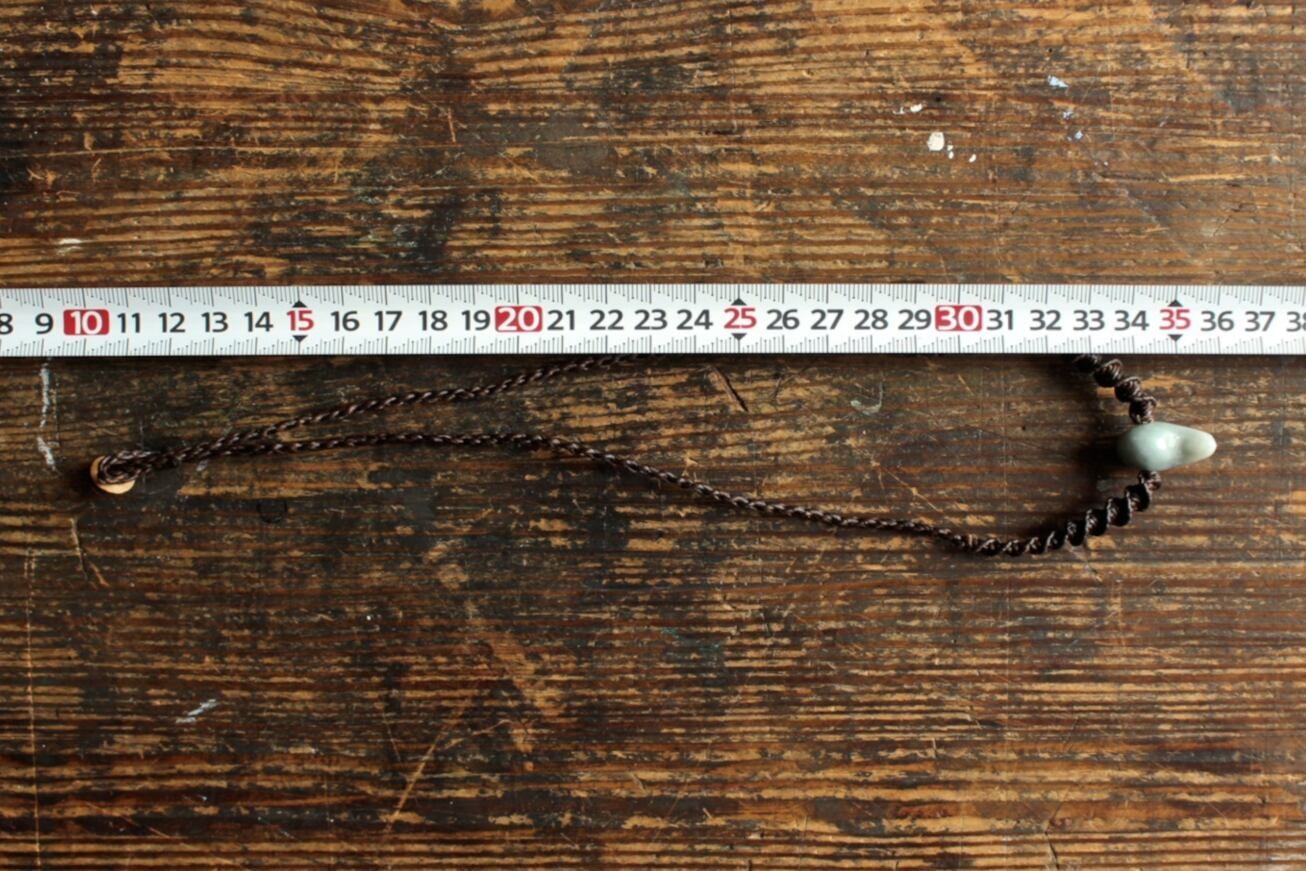 This necklace is made of Burmese jade Maga tama. Wax Cotton are used for the material of the band. It is woven in the style of the ethnic minorities of Southeast Asia.