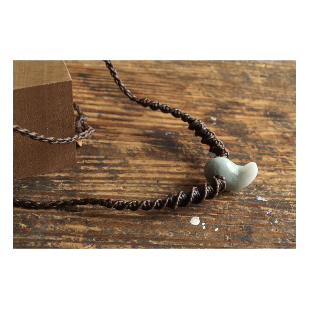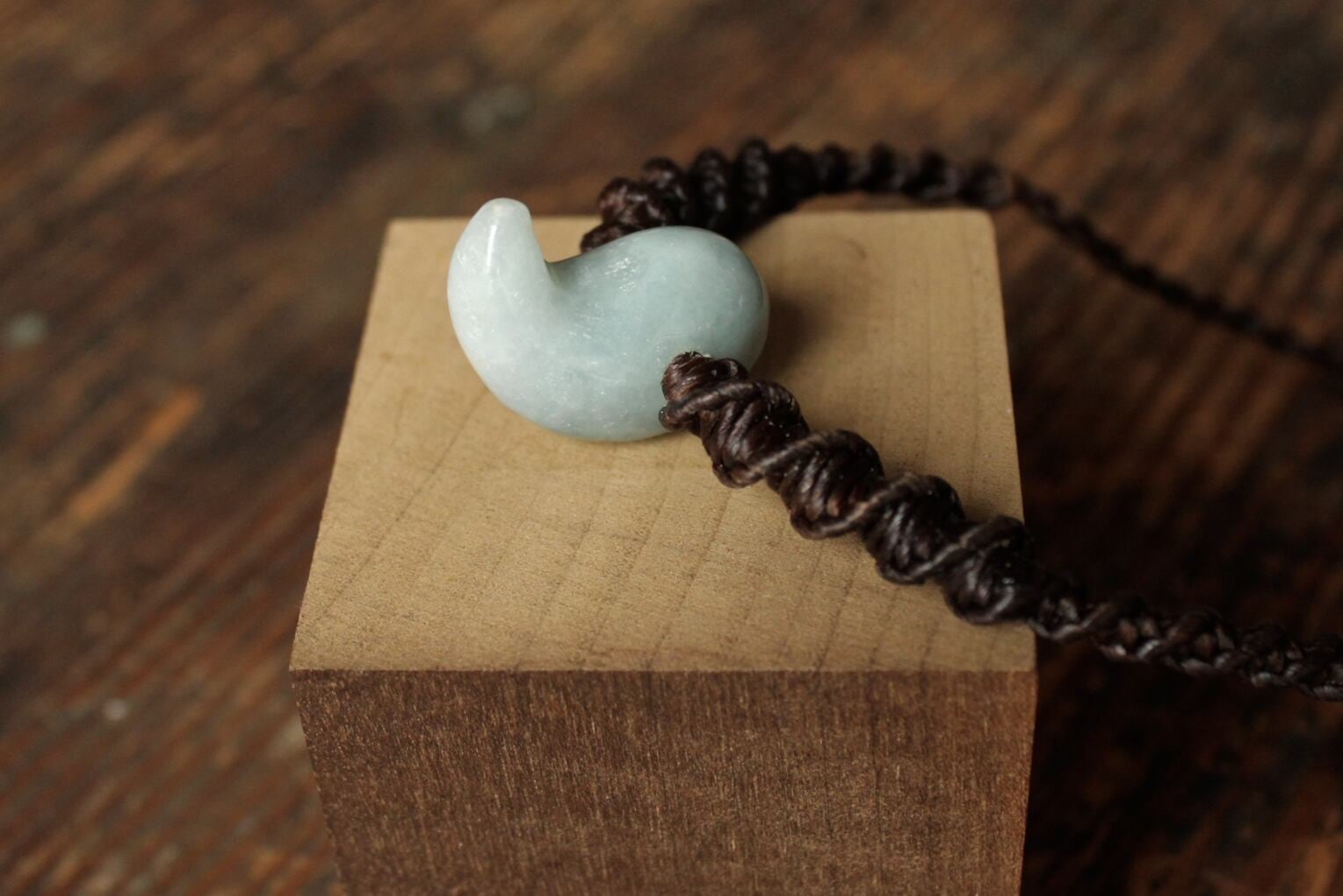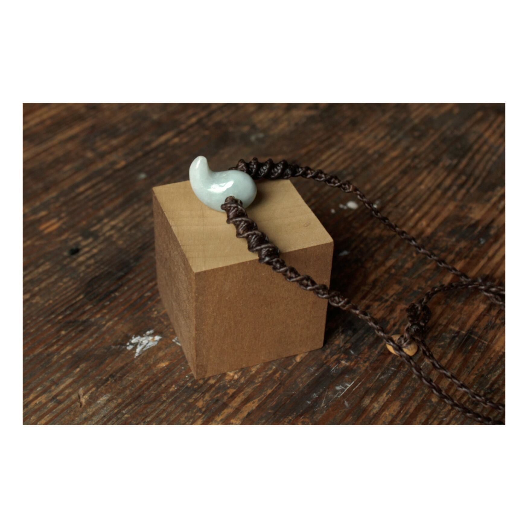 ビルマ産本翡翠の勾玉を現地で買い付け、東南アジアの少数民族であるアカ族の様式で編んでもらったオリジナルネックレスです。