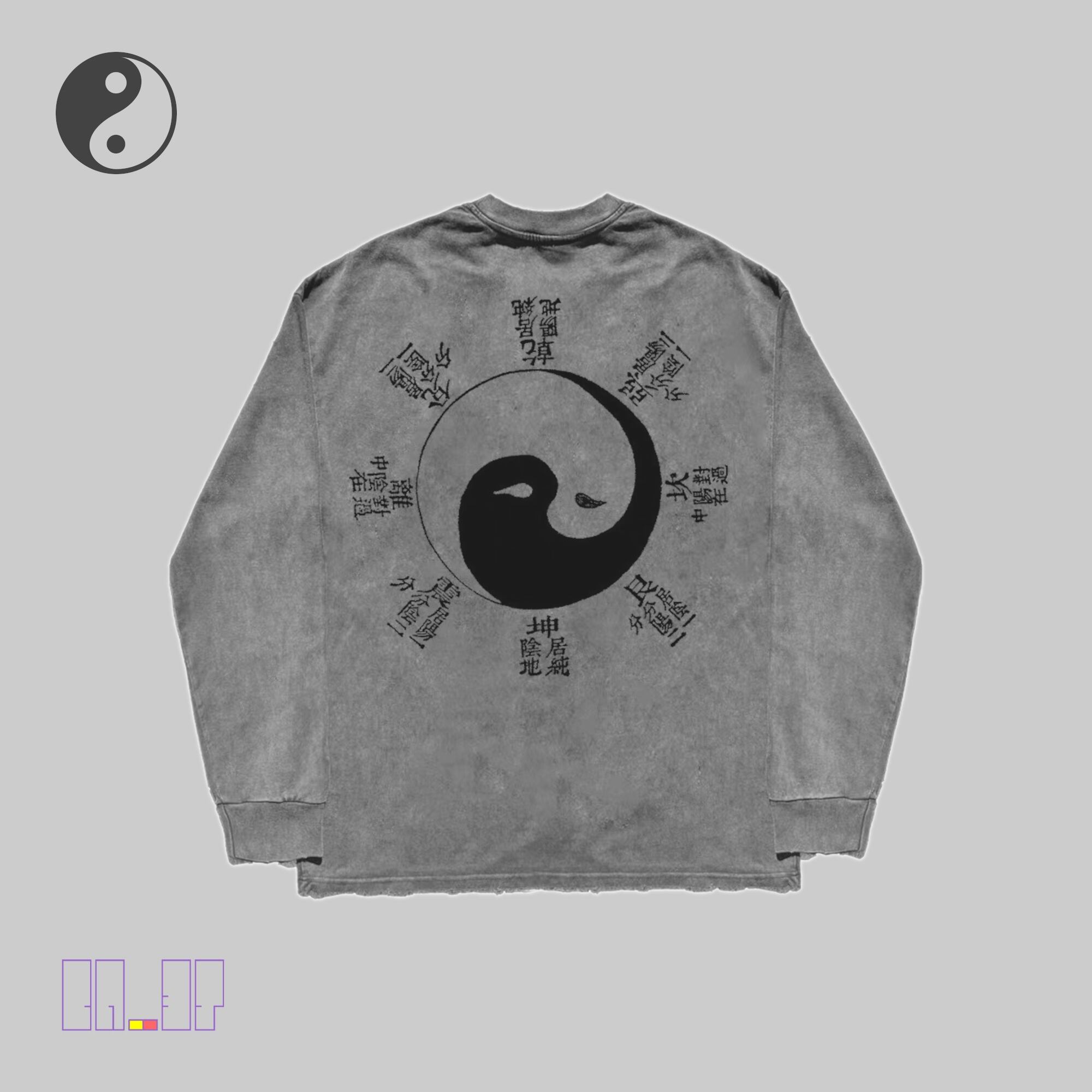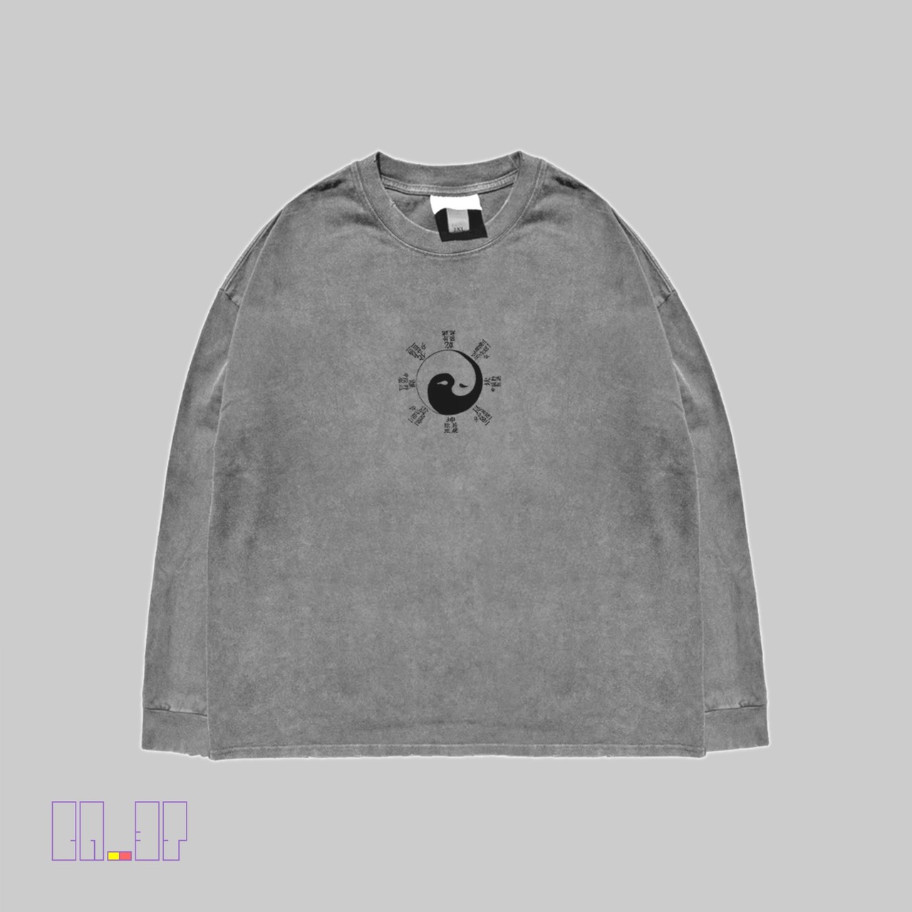 【 陰陽太極 * 古代宇宙科学 】 BR_3T X Ancient Chinese wisdom / Yin yang Long TEE Shirt - mens [ 八卦 * 易教 ] 古代中国 ロンT 長袖Tシャツ グレー メンズ オーバーサイズ 陰陽五行 新品