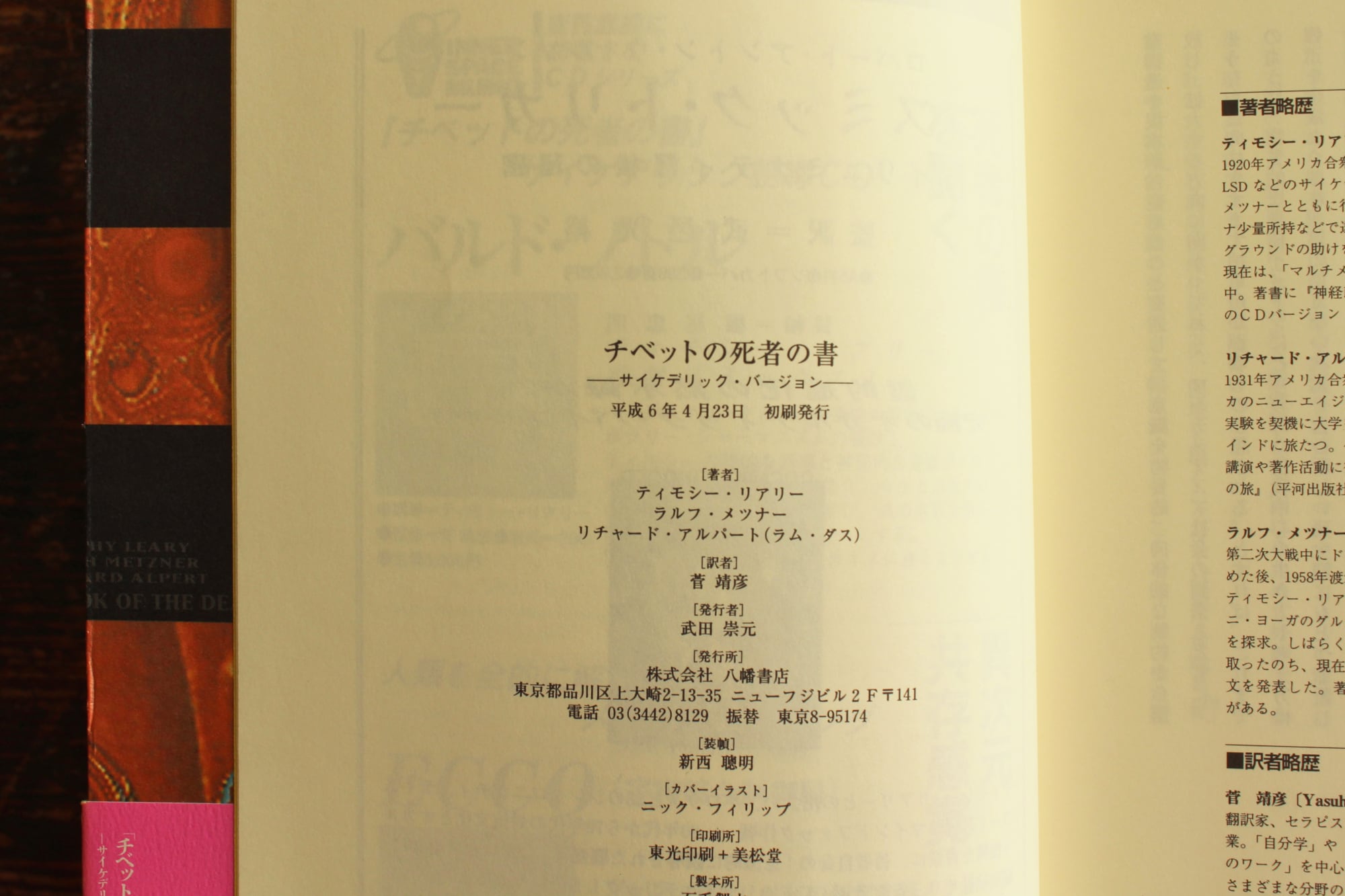 1960〜70年代頃にLSDの可能性にいち早く気付きカウンターカルチャーの伝道師として、逮捕と逃亡を繰り返しながら活躍したのがハーバード大学の心理学者だったティモシー・リアリー博士。そのティモシー・リアリーが、LSDによる幻覚体験とチベット密教の経典「チベット死者の書」の類似性に着目し、出版したのが本書です。