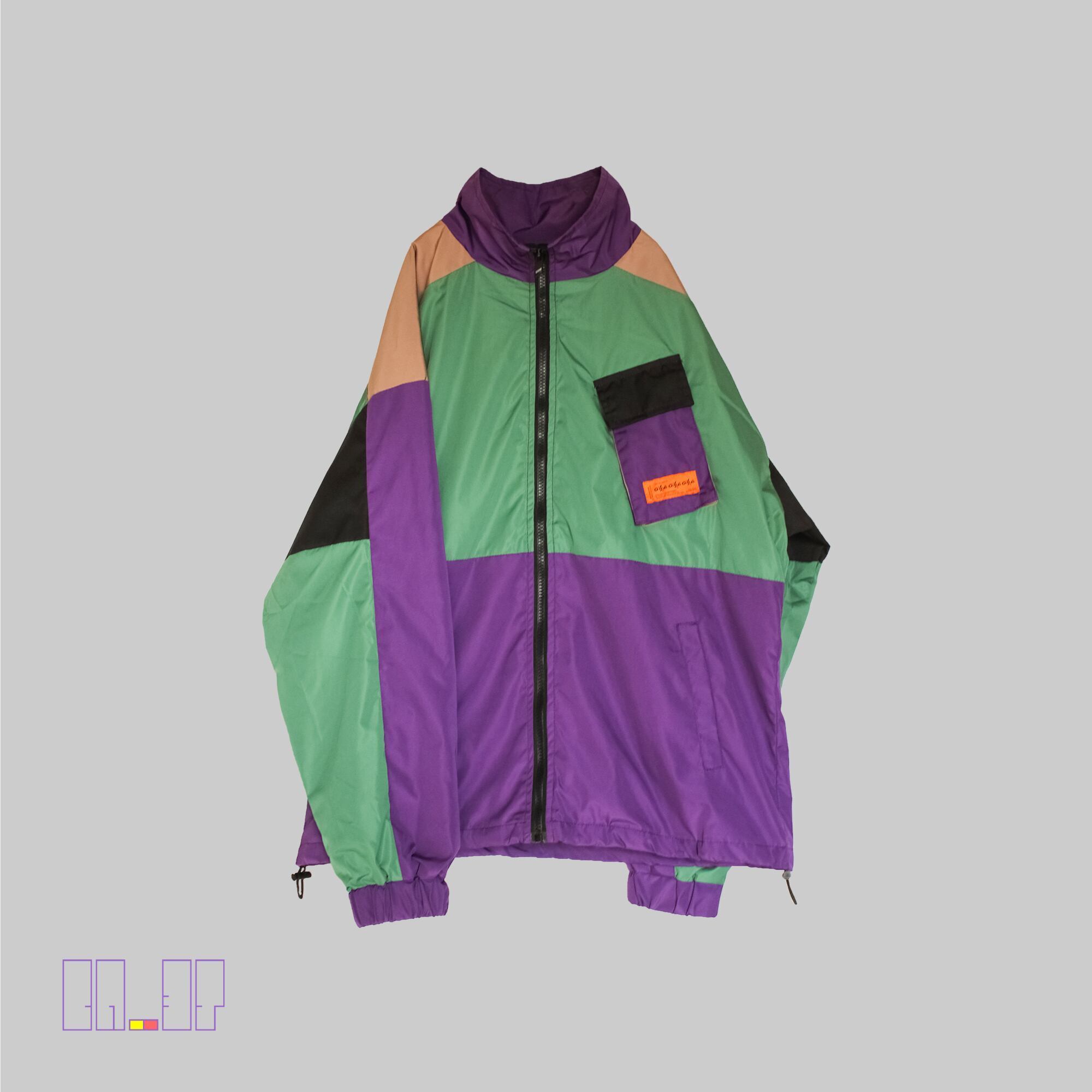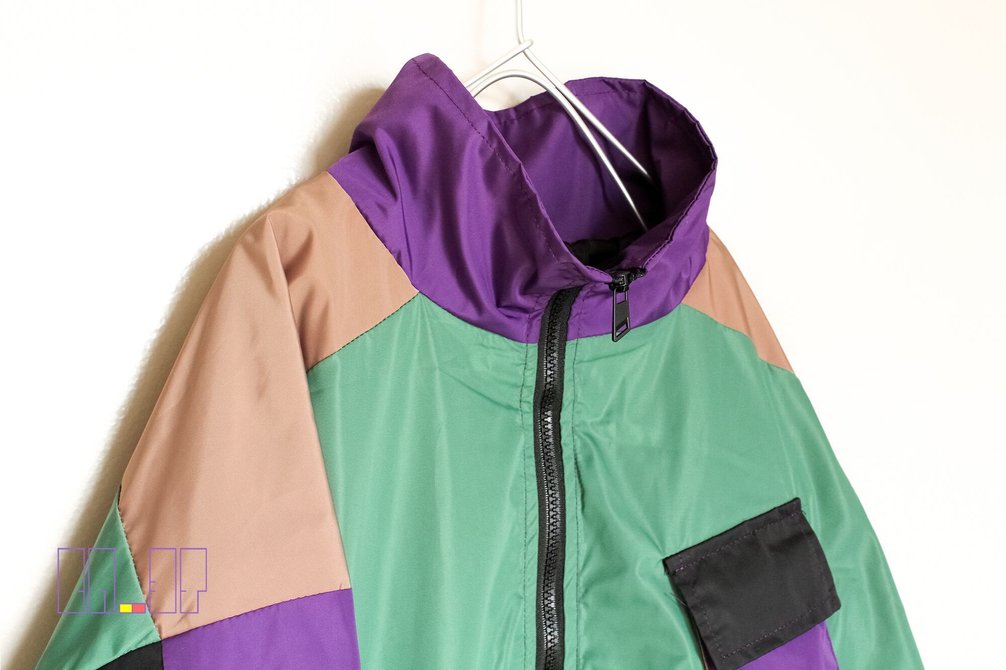【 古着 マルチカラージャケット 緑 】 BR_3T X Multi colored cyber jacket green | 紫 レトロ アウター オーバーサイズ メンズ L XL 古着 格安