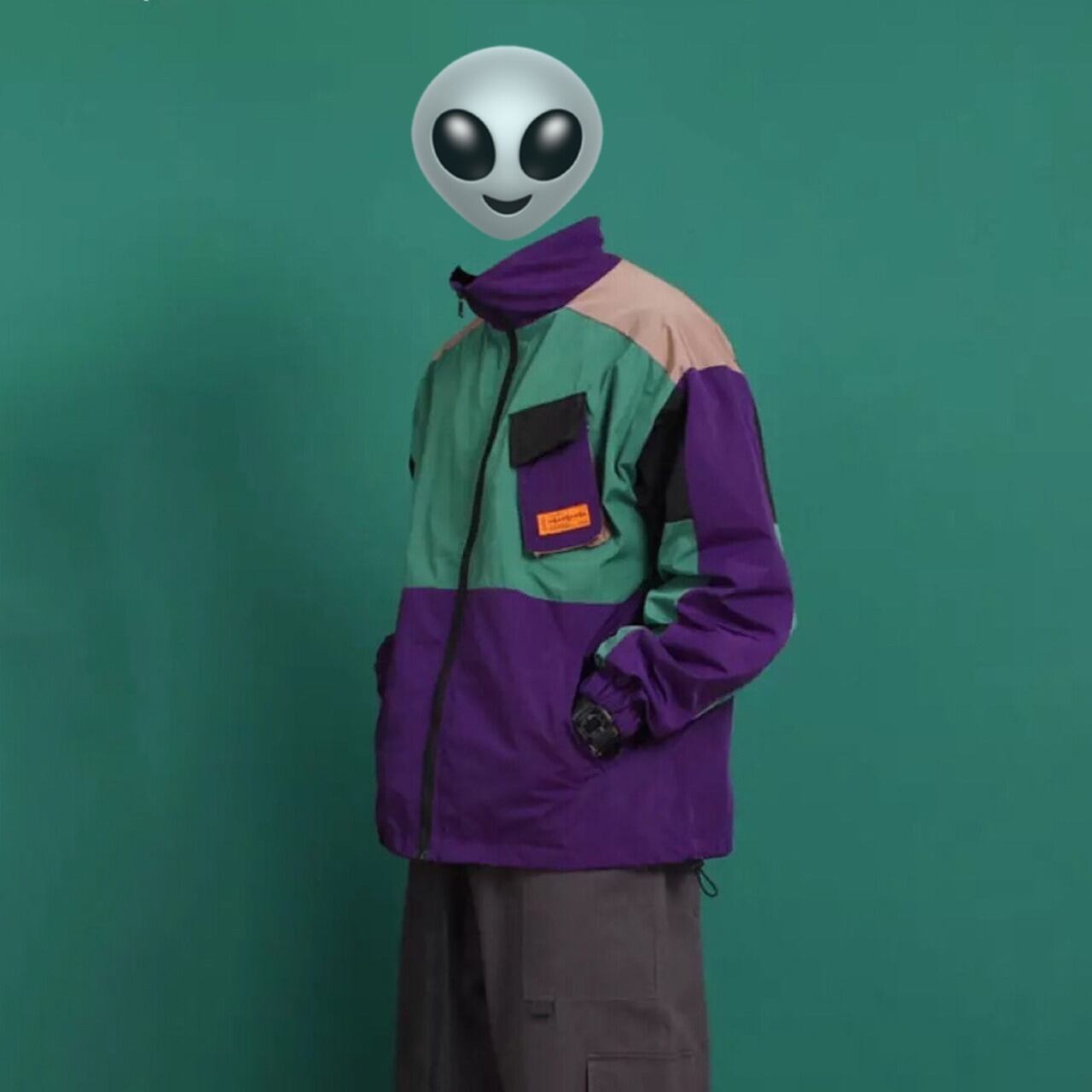 【 マルチカラー ジャケット 緑 】 BR_3T X multi colored cyber jacket green / レトロデザイン ウィンドブレーカー ポリエステル ナイロンジャケット系 ゆったり オーバーサイズ 長袖 グリーン カラフル アウター レディース 原宿 韓国 ストリート K-POP かわいい おしゃれ サイバー 新品 春物 秋物