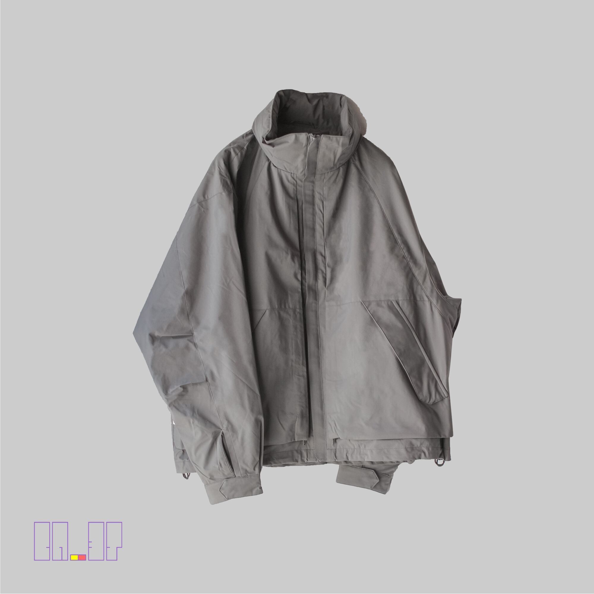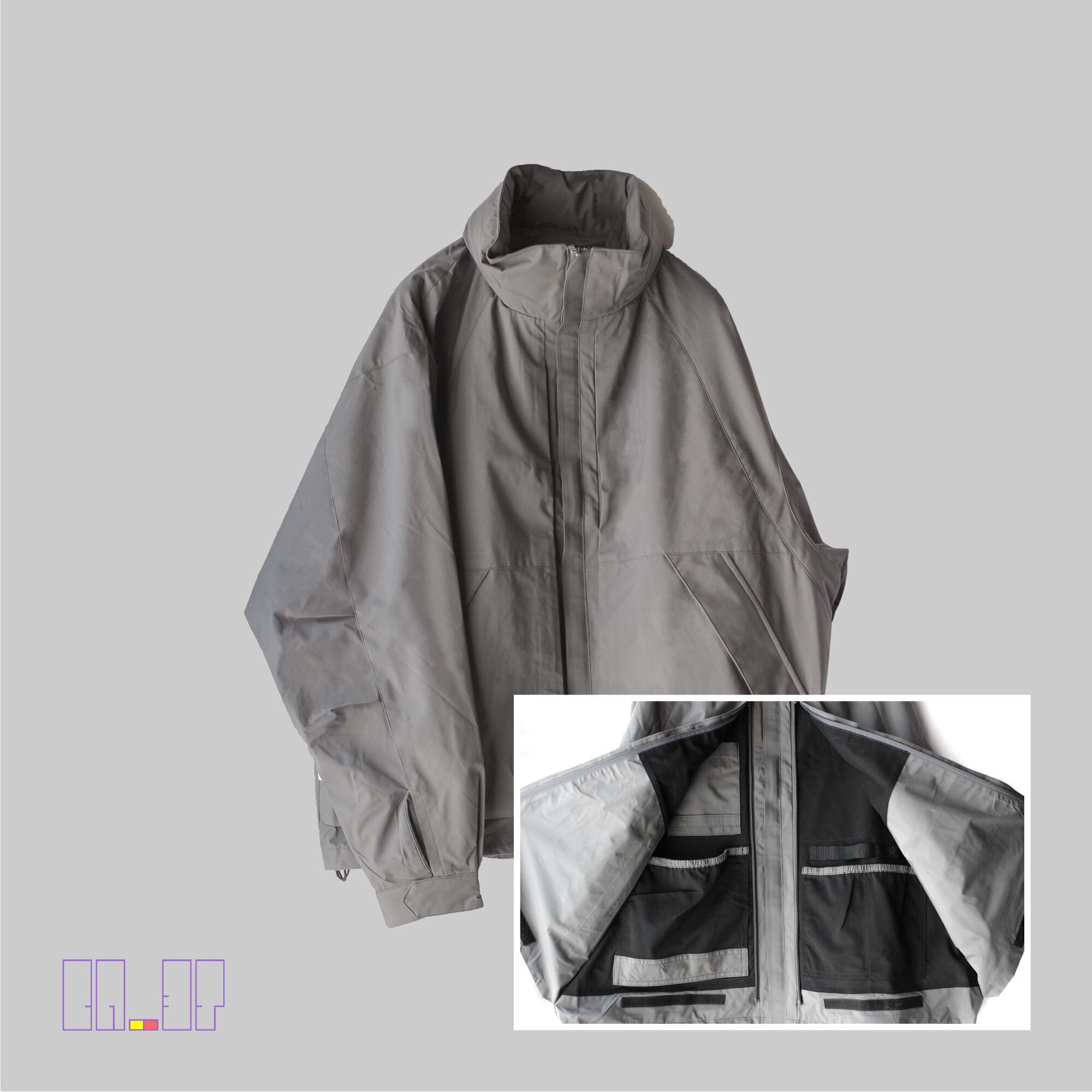 一点のみ!未使用に近い! 【 手ぶらジャケット * サバイバル防水ジャケット 】 BR-3T X Survival waterproof jacket - oversize [ すごい収納性 ] デュポン 三層レイヤー 高機能 ジャケット オーバーサイズ グレー メンズ XL程度 ミニマリスト ノマド 極美品 サンプル品 レインジャケット レインコート系 ナイロンジャケット アウトドア