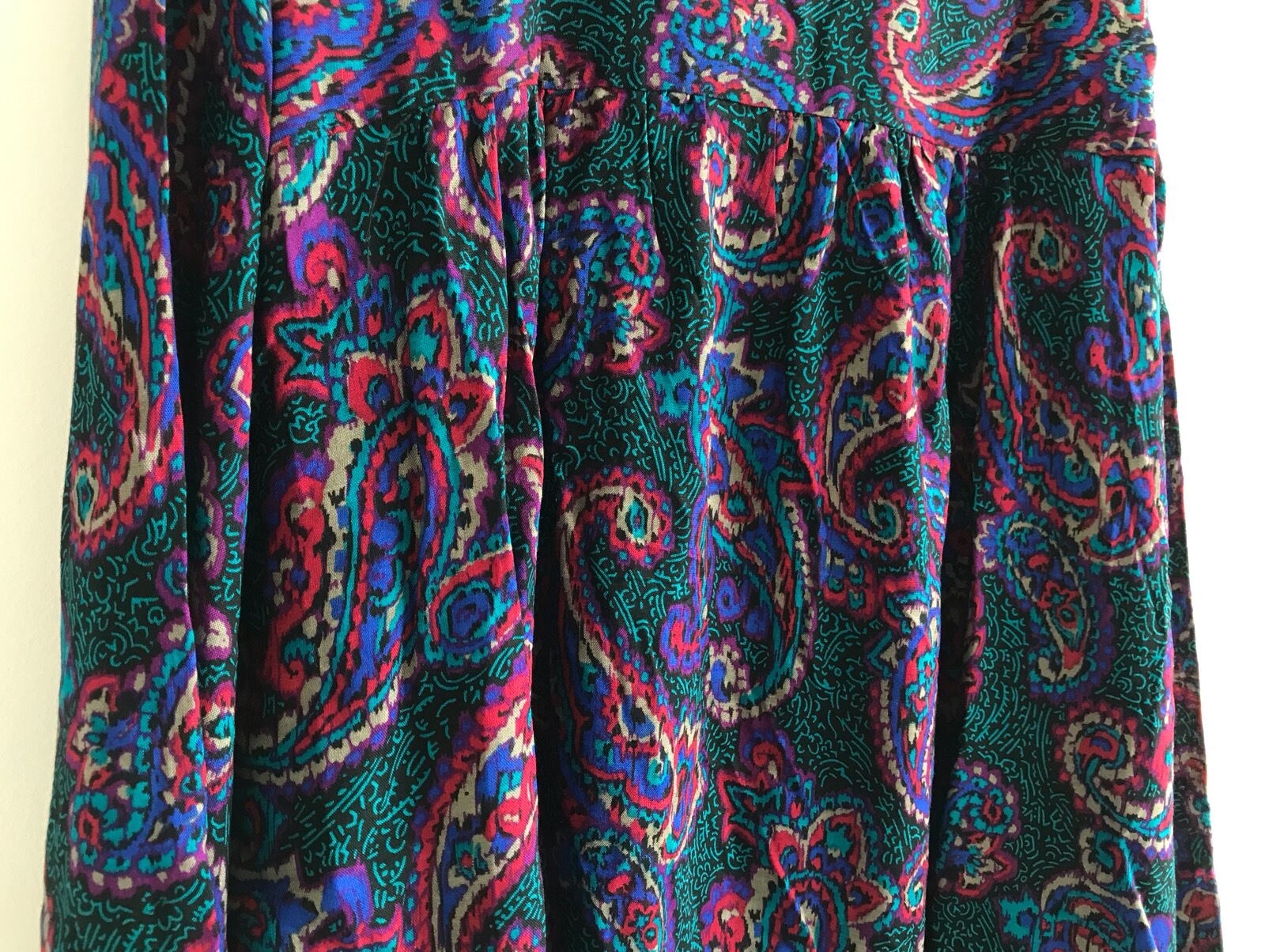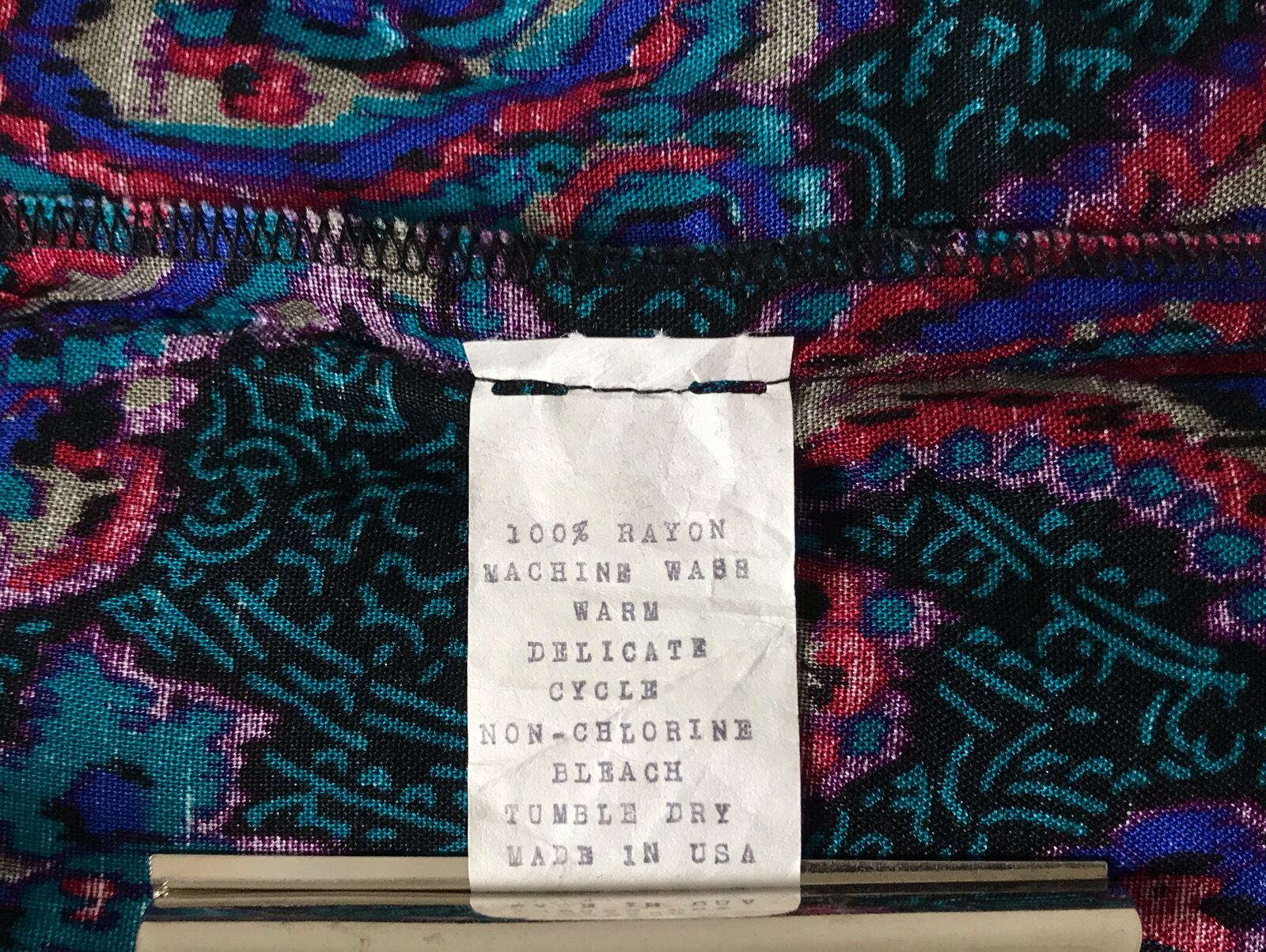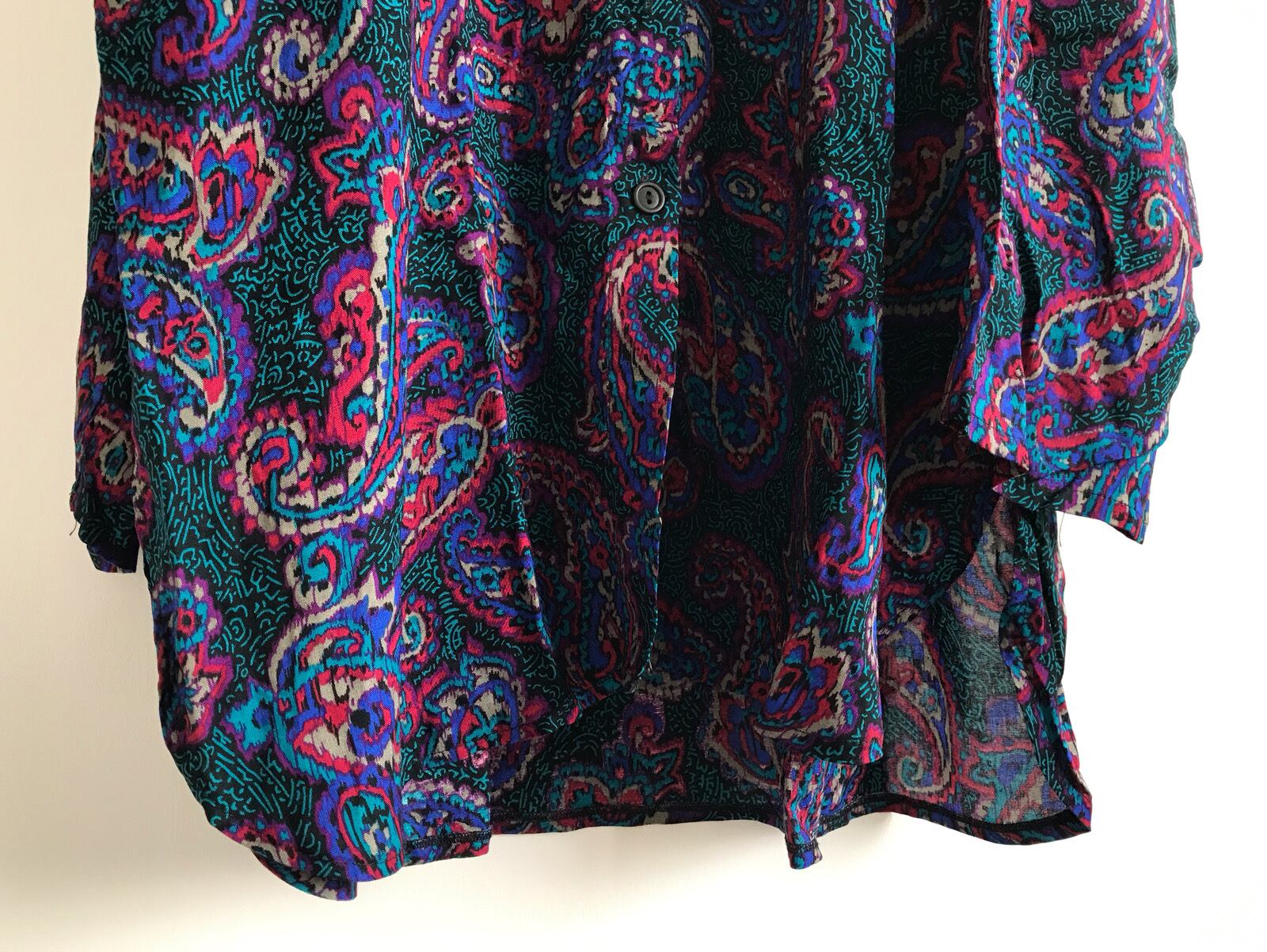【 USA製 古着 ★ ペイズリー柄 】psychedelic cyber matrix paisley pattern long length shirt - made in USA - rayon / USA製 ロング丈 ゆったり ビッグサイズ 総柄シャツ 長袖シャツ 半端袖 七分袖 シャツワンピース レーヨン製 レディース XL ブラウス トップス オーバーサイズ ビンテージ ストリート 派手 奇抜 原宿 秋物
