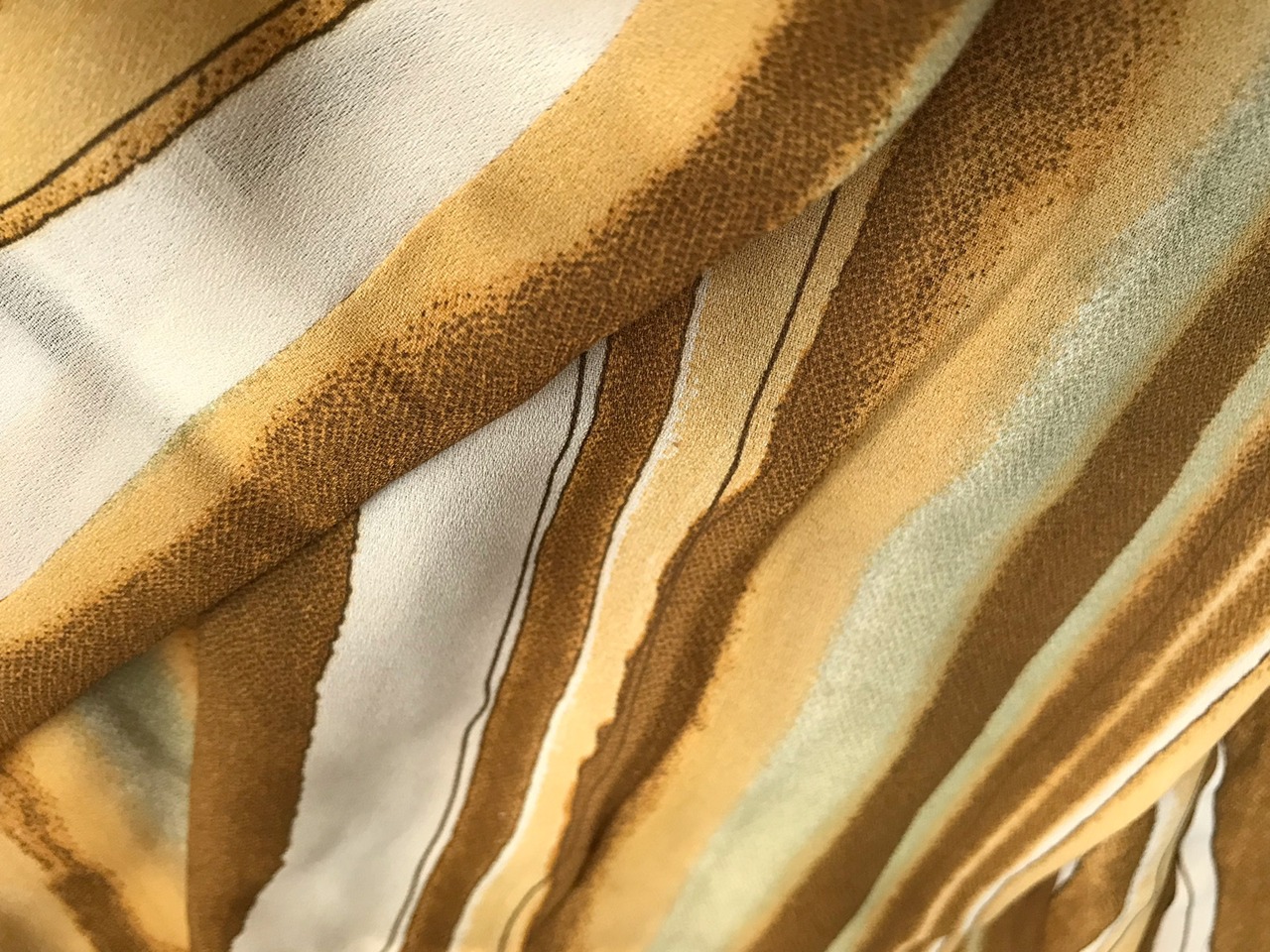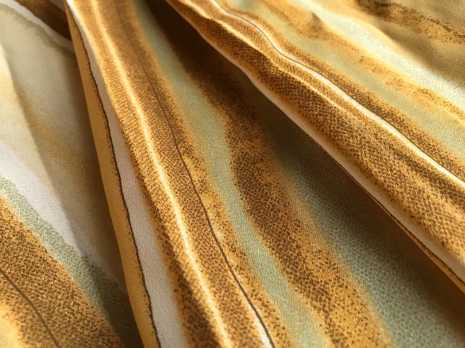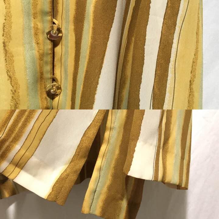 Bohemian Wide Stripe Long shirt, made in Japan, used 日本製 古着 - イタリア製生地 ボヘミアン ストライプ柄 柄シャツ 長袖シャツ ベージュ系 若干透け感あり レディース M ブラウス トップス 原宿 高円寺 下北沢