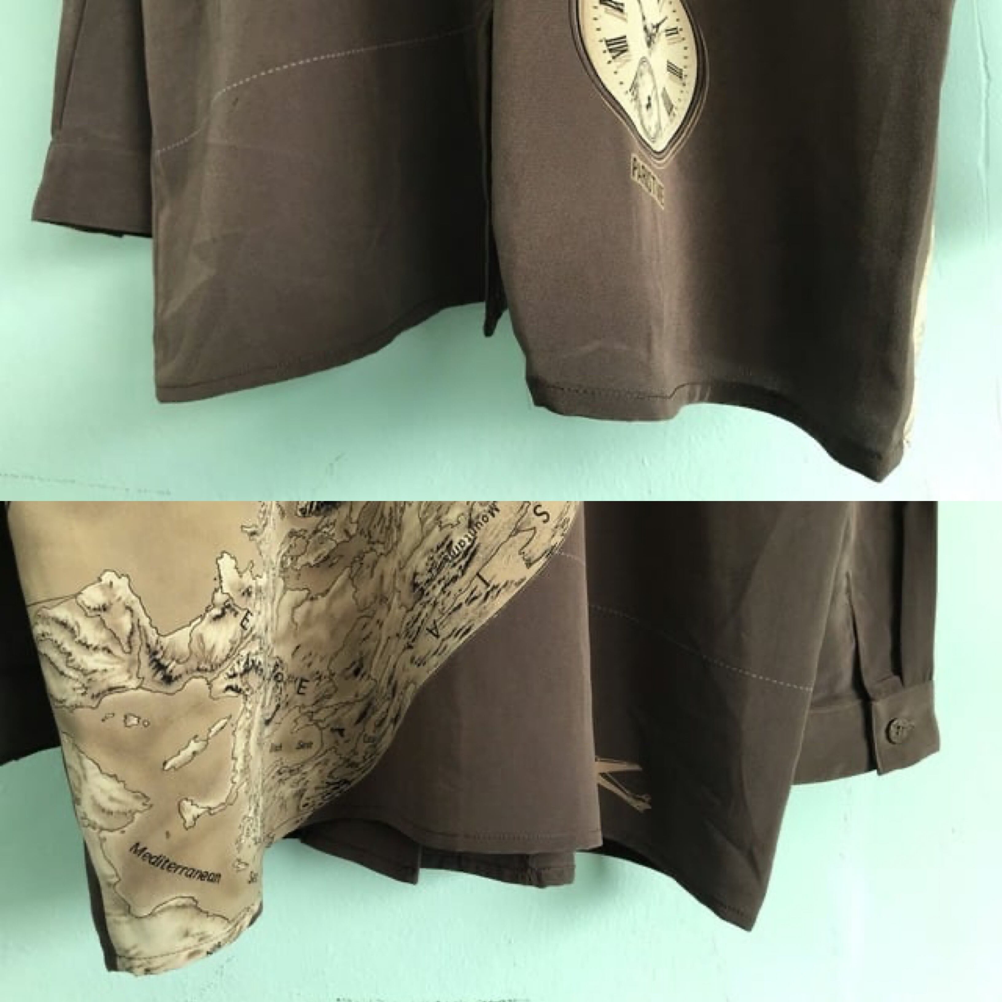 world map pattern around the world long sleeve shirt - made in JAPAN, used