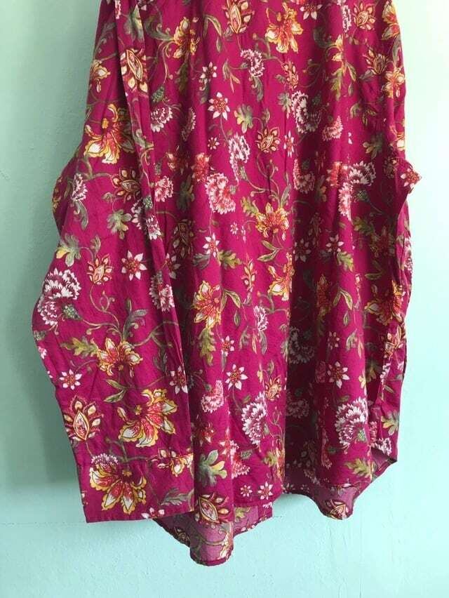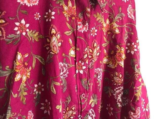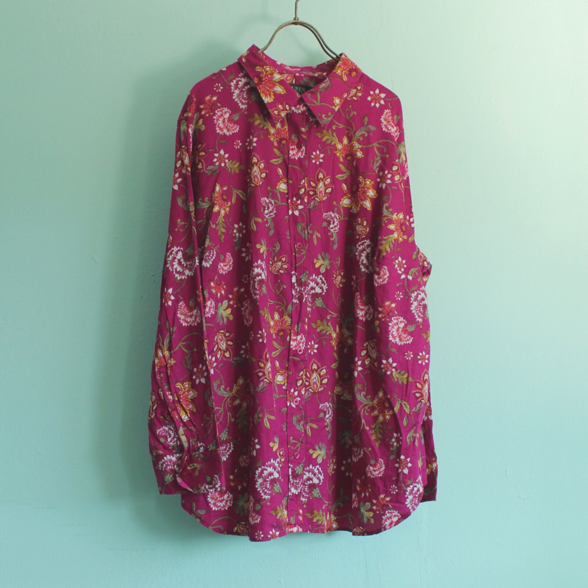 lauren ralph lauren - botanical pattern long sleeve shirt ladies 2XL USA used 【 美品 USA古着 ★ ラルフローレン 】 花柄 ボタニカル柄 総柄 柄シャツ 長袖 赤味ある紫色 マゼンタ系 レディース XXL ブラウス トップス ゆったり オーバーサイズ 原宿 秋物