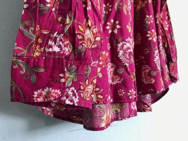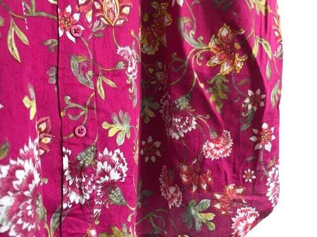 Ralph Laurenのウィメンズラインであるローレン ラルフ ローレン (LAUREN RALPH LAUREN) のボタニカルシャツ。肌触りの良いコットン製。彩度高めのマゼンタ(赤紫)。メンズだと、たぶん大きくないXLサイズくらい(ですが実寸を確認してください)。タグはピカピカで、綺麗です。使用があったとしても殆どなさそうですが、シワを取ってないのでAランクにします。