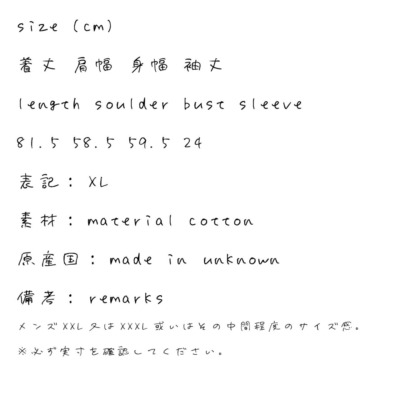 保管時に着いた、洗えば取れる白い薄汚れ(糊かもしれません)が両肩にあるのと、たぶん洗っても取れなそうな黒い点が左袖にあります。着用を感じません。タグはありませんが、未使用品で美品です。
