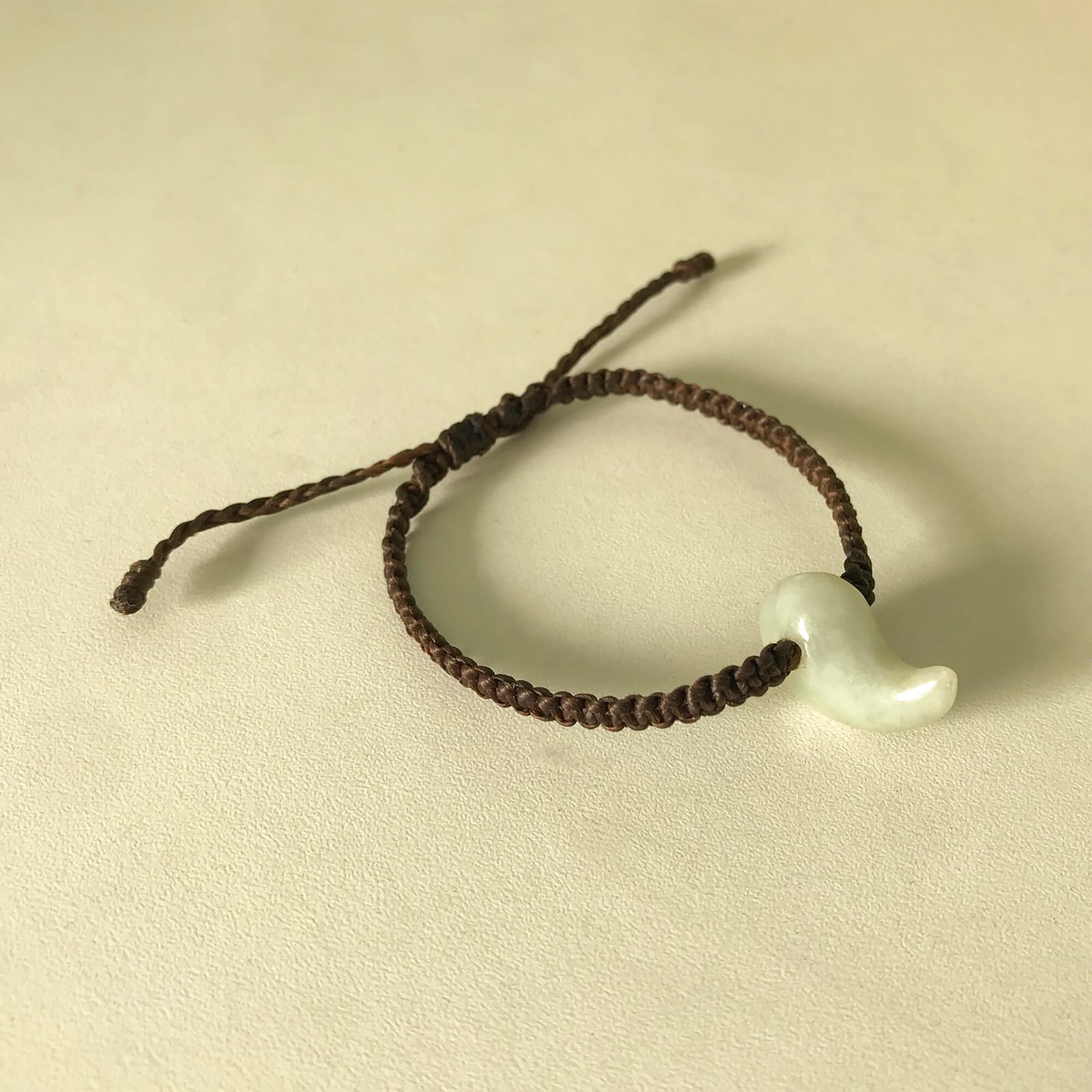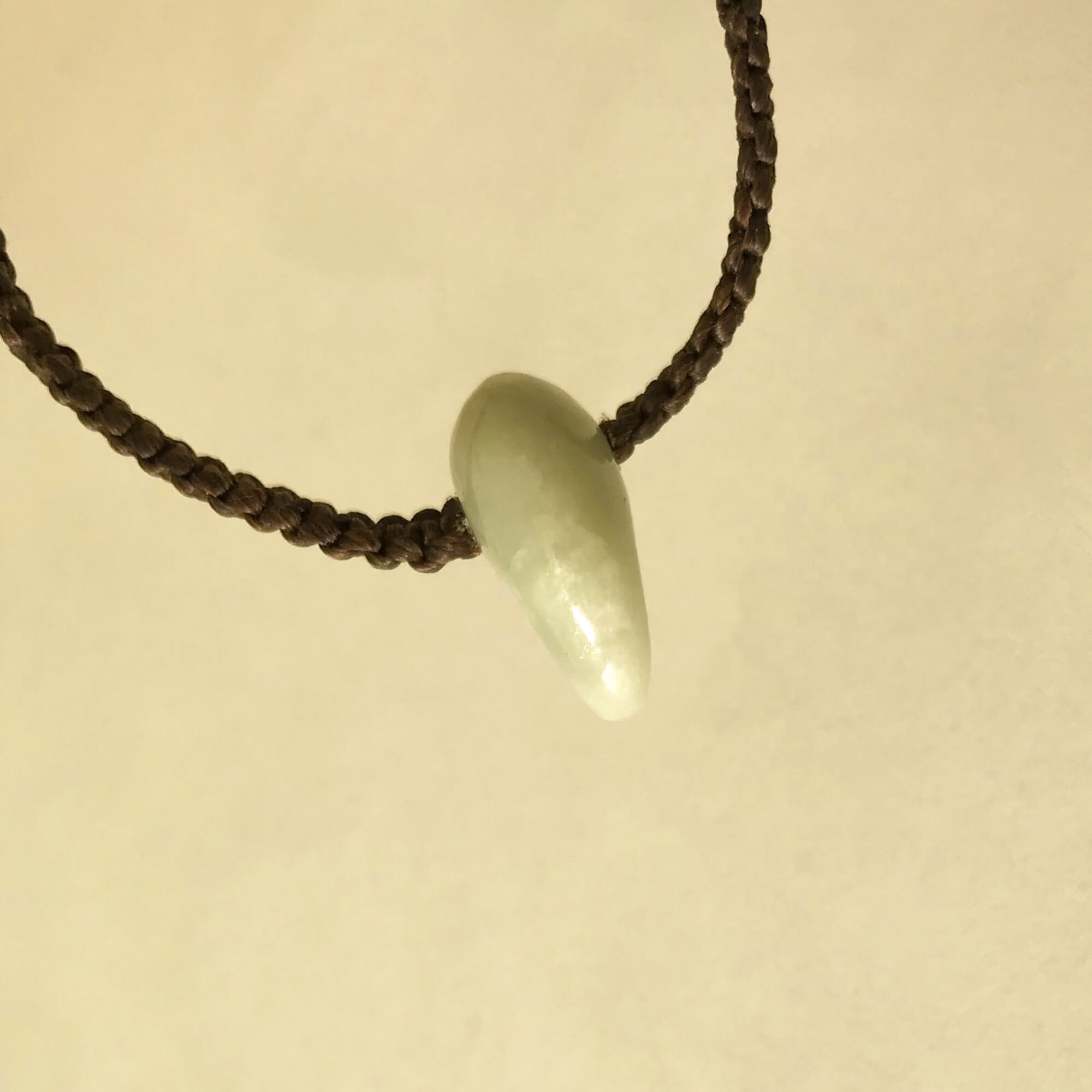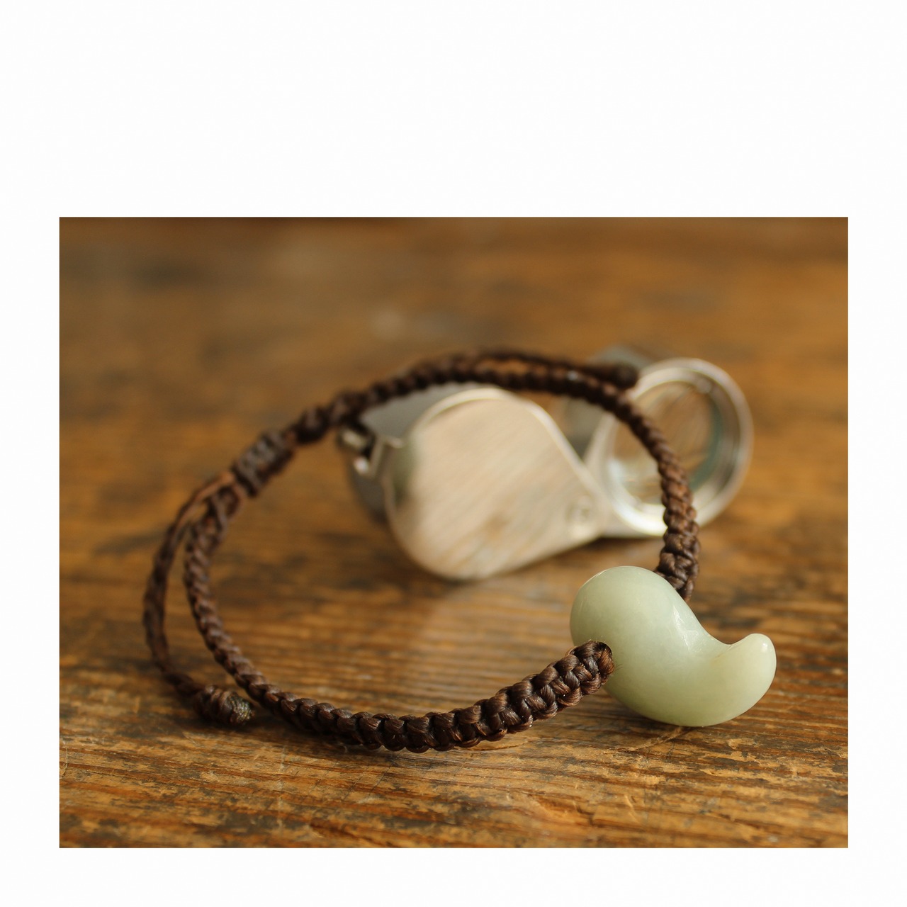 NU JOMON SERIES 「MAGATAMA」です。ビルマ産本翡翠の勾玉を、東南アジア少数民族アカ族の様式でタイ人の職人に編んで貰った当店オリジナルのブレスレットシリーズです。他では買えません。