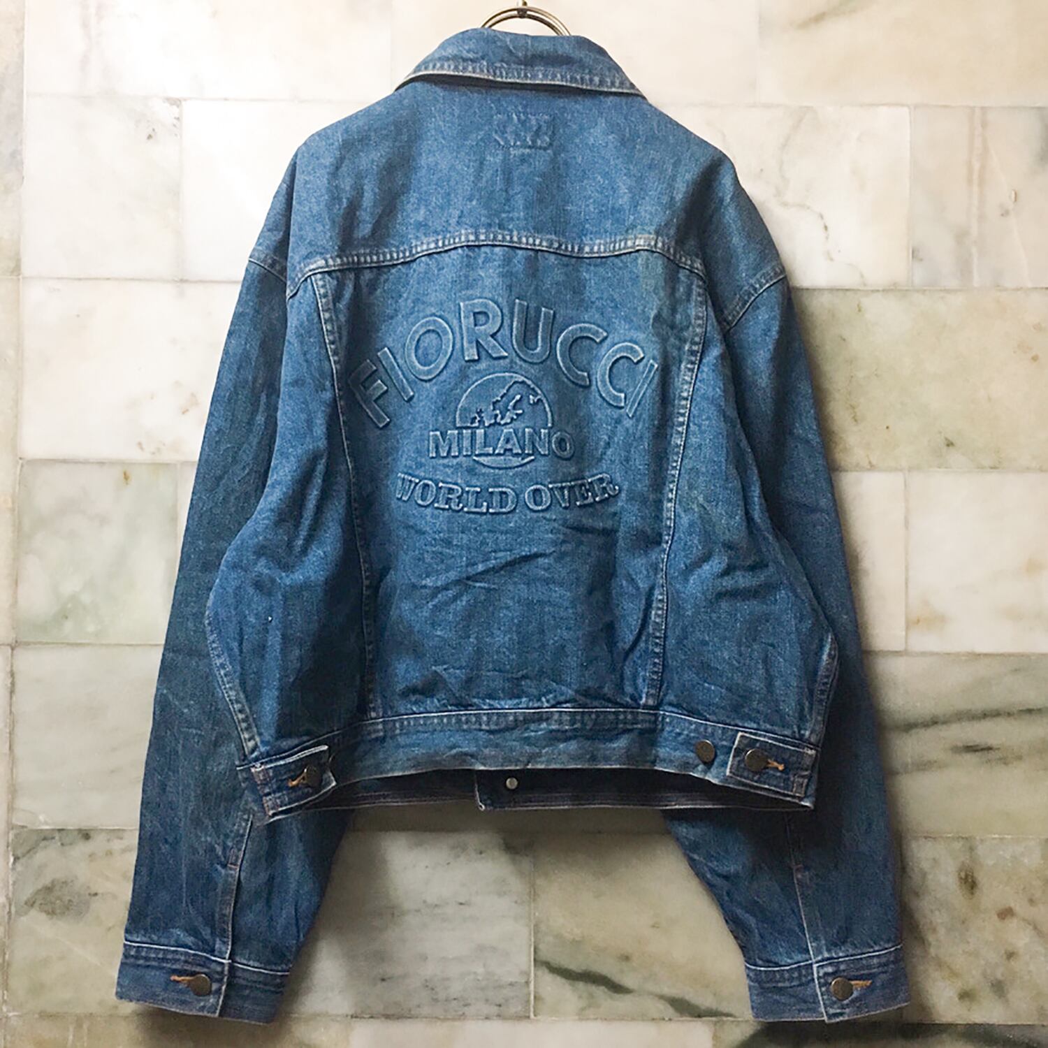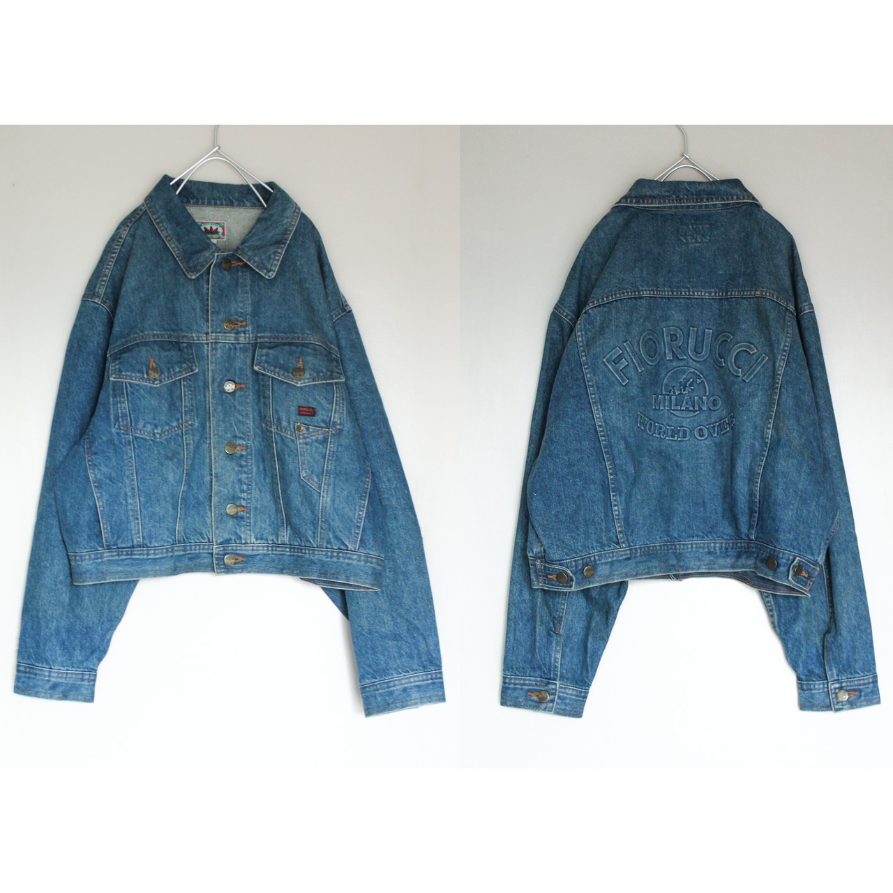 80s 90s ’WORLD ORVER” FIORUCCI DENIM Jacket, Italy Japan vintage used 【 イタリア古着 ★ Gジャン 】 日本製 デニムジャケット ジージャン メンズ XL ゆったり オーバーサイズ ビンテージ ブランド古着