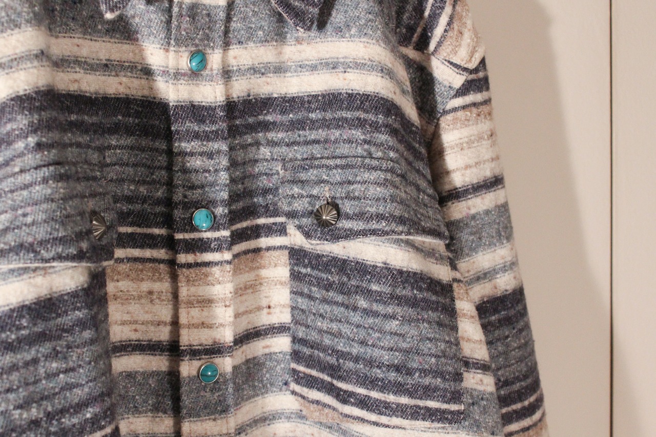 native Indian patterned flannel shirt with dummy turquoise buttons