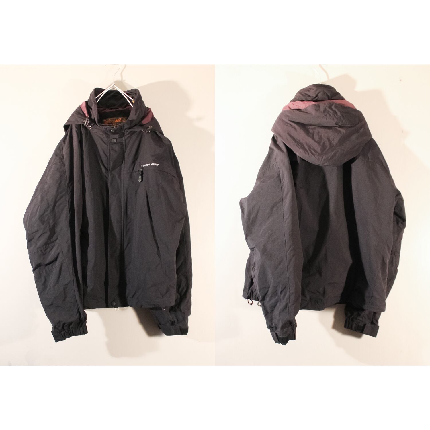 【 90s 00s USA古着 ★ ティンバーランド 】 vintage Timberland waterproof nylon jacket - used mens / ヴィンテージ 防水 ナイロンジャケット ロゴ刺繍 パーカー フーディー アウトドア ウィンドブレーカー 黒 XXL アウター オーバーサイズ 原宿 秋物 ゆるだぼ ブランド古着