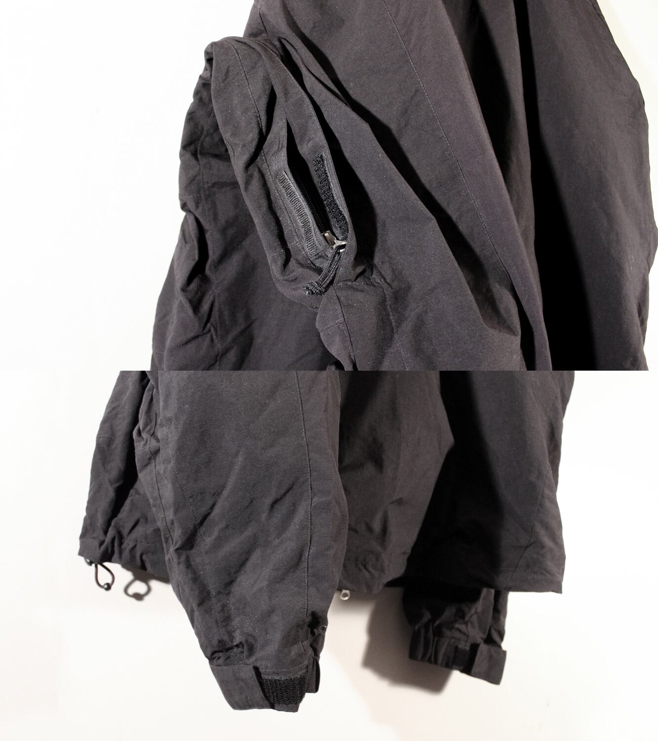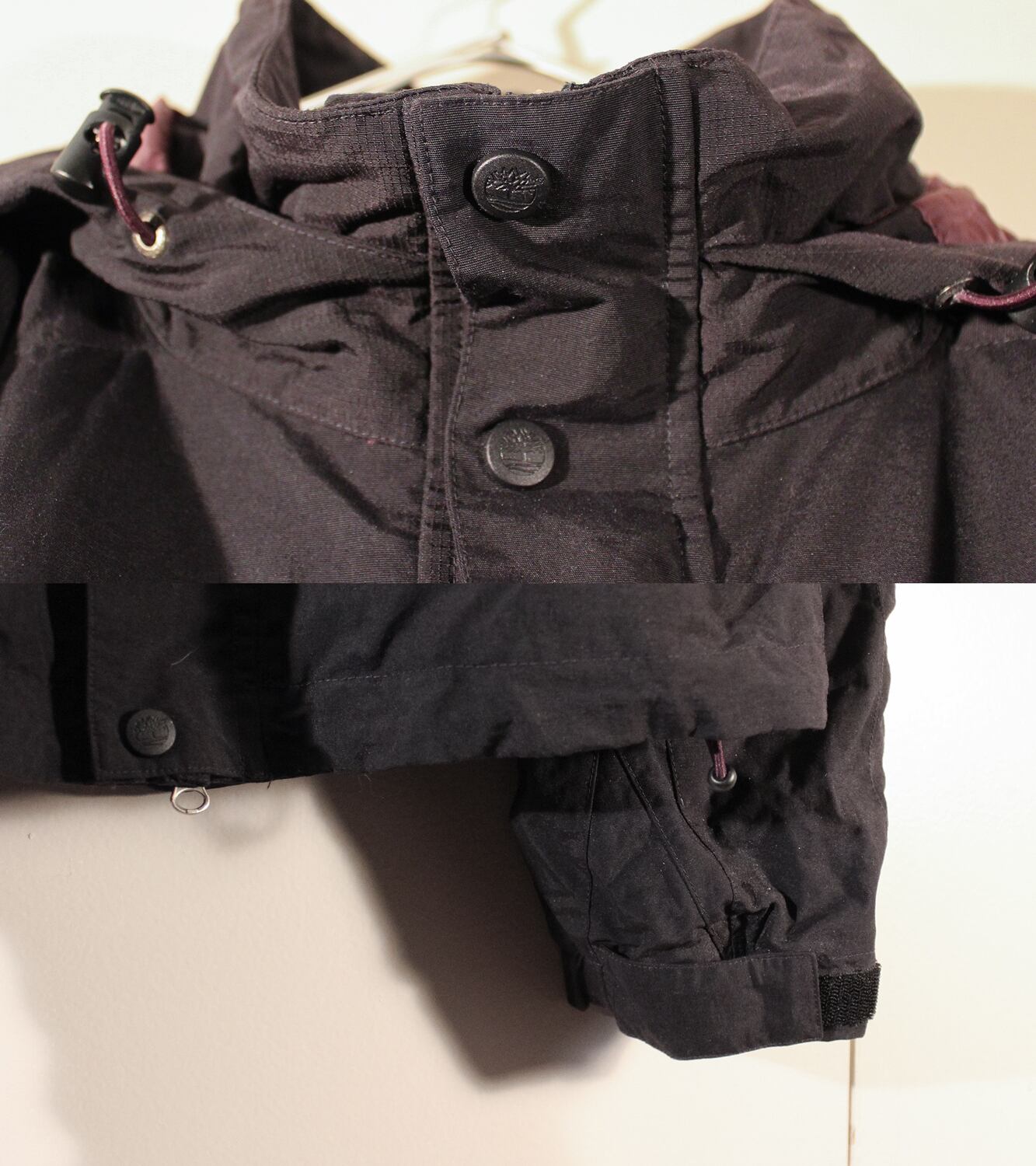現在では入手困難な、オールドティンバーランドの2001年秋モデル。21世紀も早々に発売された防水仕様のウォータープルーフナイロンジャケット。黒とパープルの色組みは、どこかSF感があります。ご覧の通りで汚い感じはあまりせず、むしろ綺麗だと思いますが、左袖に粉っぽい汚れがついています(画像7)。
