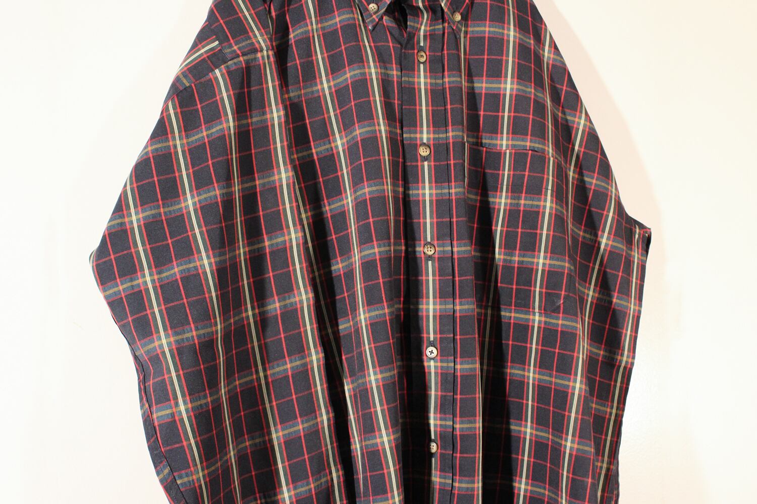 【 海外古着 ★ チェック柄 】 black plaid shirt / mens, used - チェック柄 総柄シャツ 黒シャツ 長袖 メンズ XL USA EURO ヴィンテージ