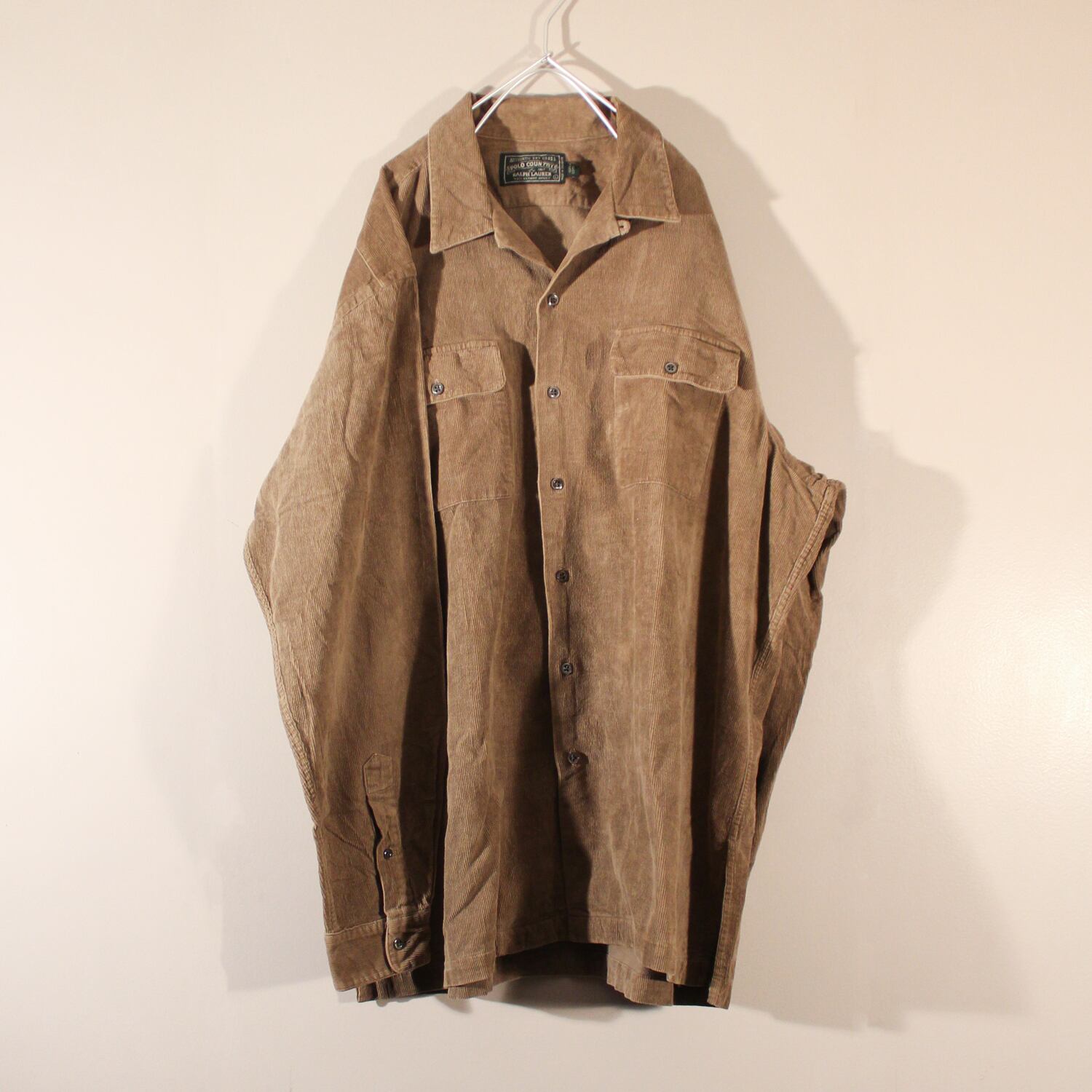 【 USA古着 ★ 80s 90s ポロカントリー 】 POLO COUNTRY RALPH LAUREN corduroy shirt / vintage, mens, used - ヴィンテージ ポロラルフローレン コーデュロイシャツ 長袖 カーキ ライトブラウン メンズ XL XXL