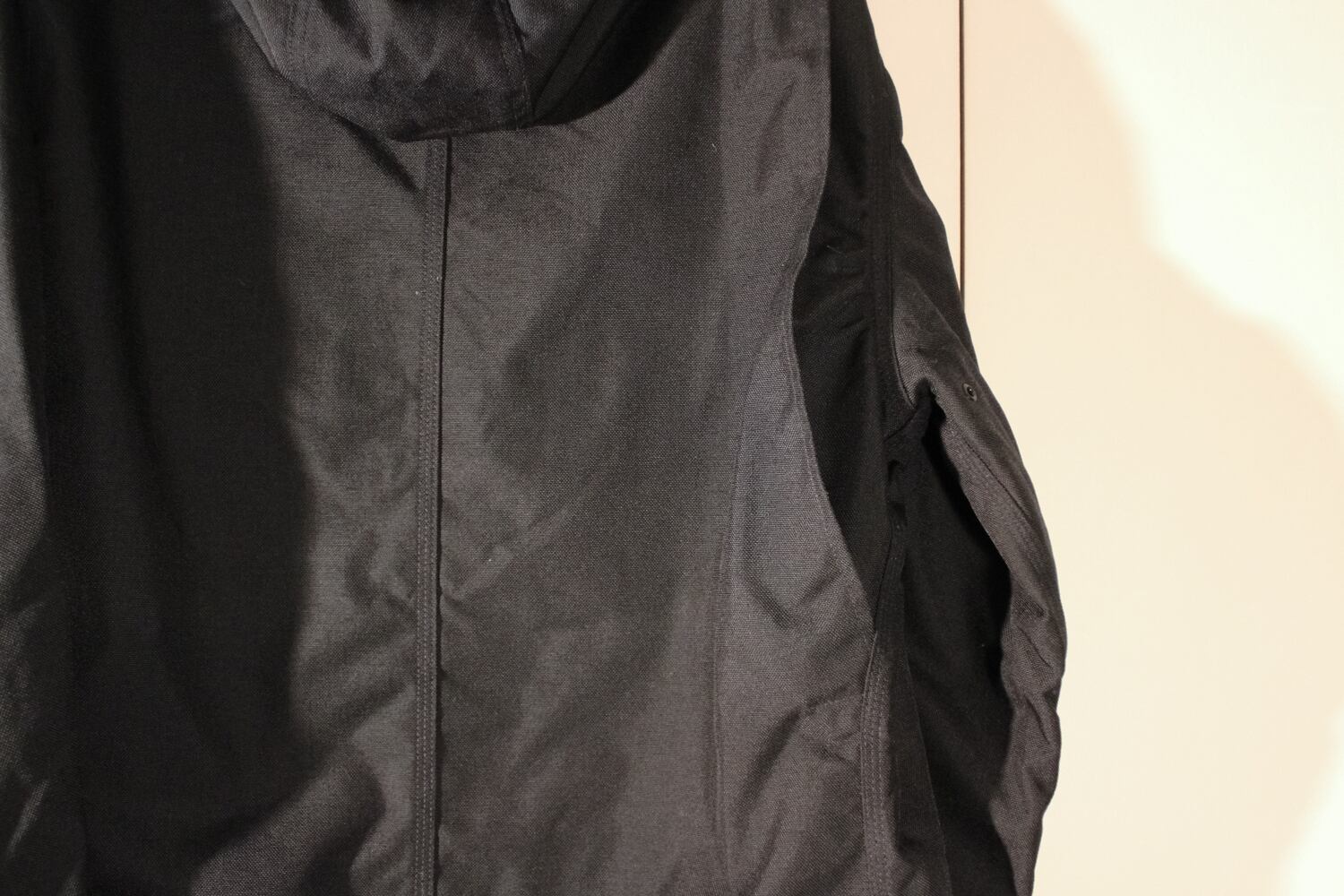 タフな素材ですが撥水性については、現在のコンディションでは、激しい水を防ぐレインウェアとしての利用はおすすめしません。
