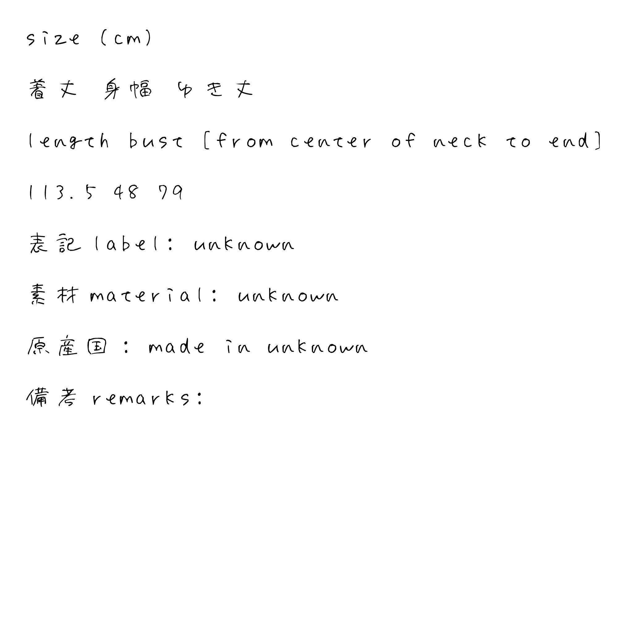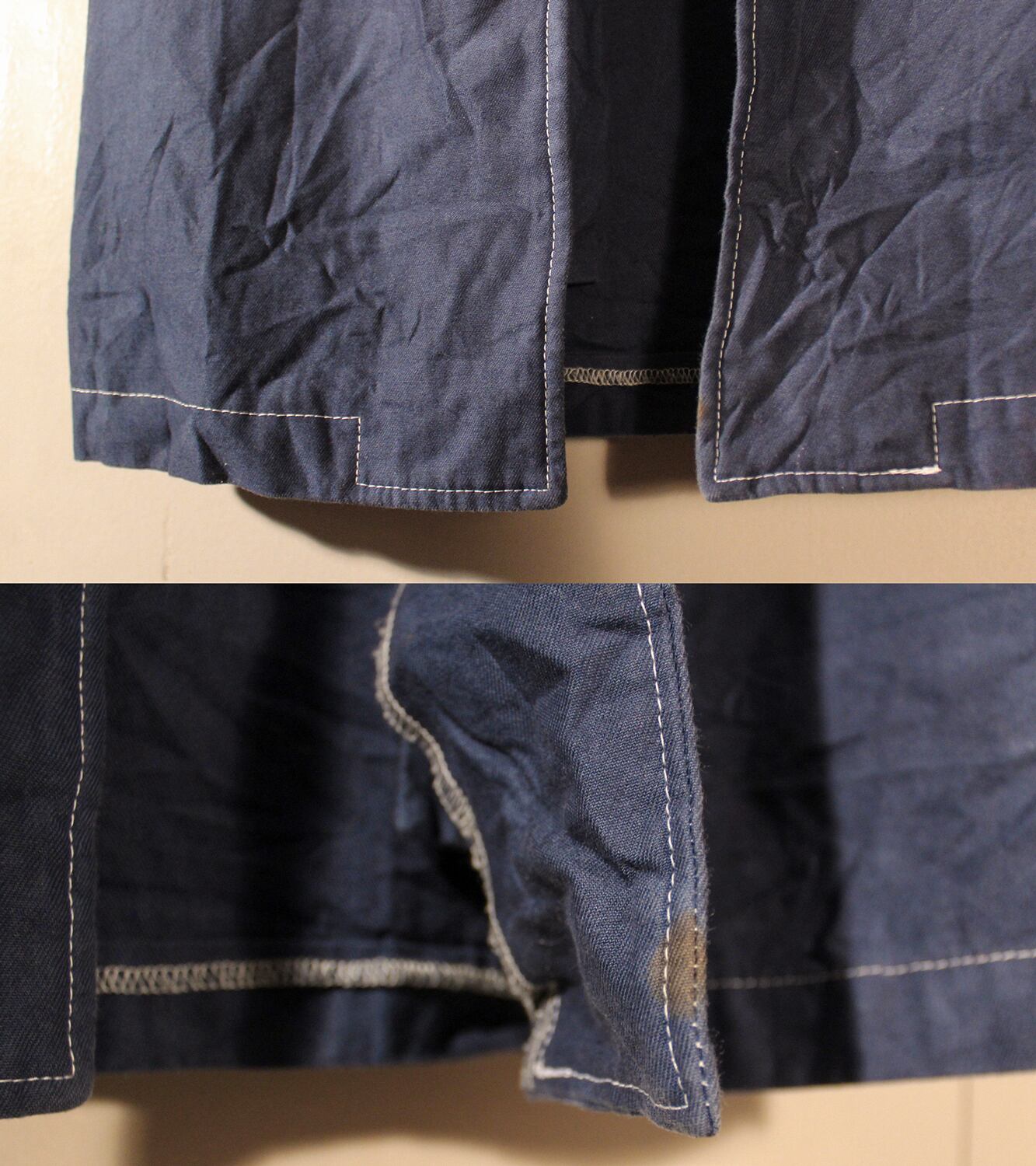 手染めしたような風合いで、均一性はありません。ややマダラというか、ムラっぽさを感じます。裾に染みあり。全体にシワが結構あります。N〜Vランクくらいのコンディションです。