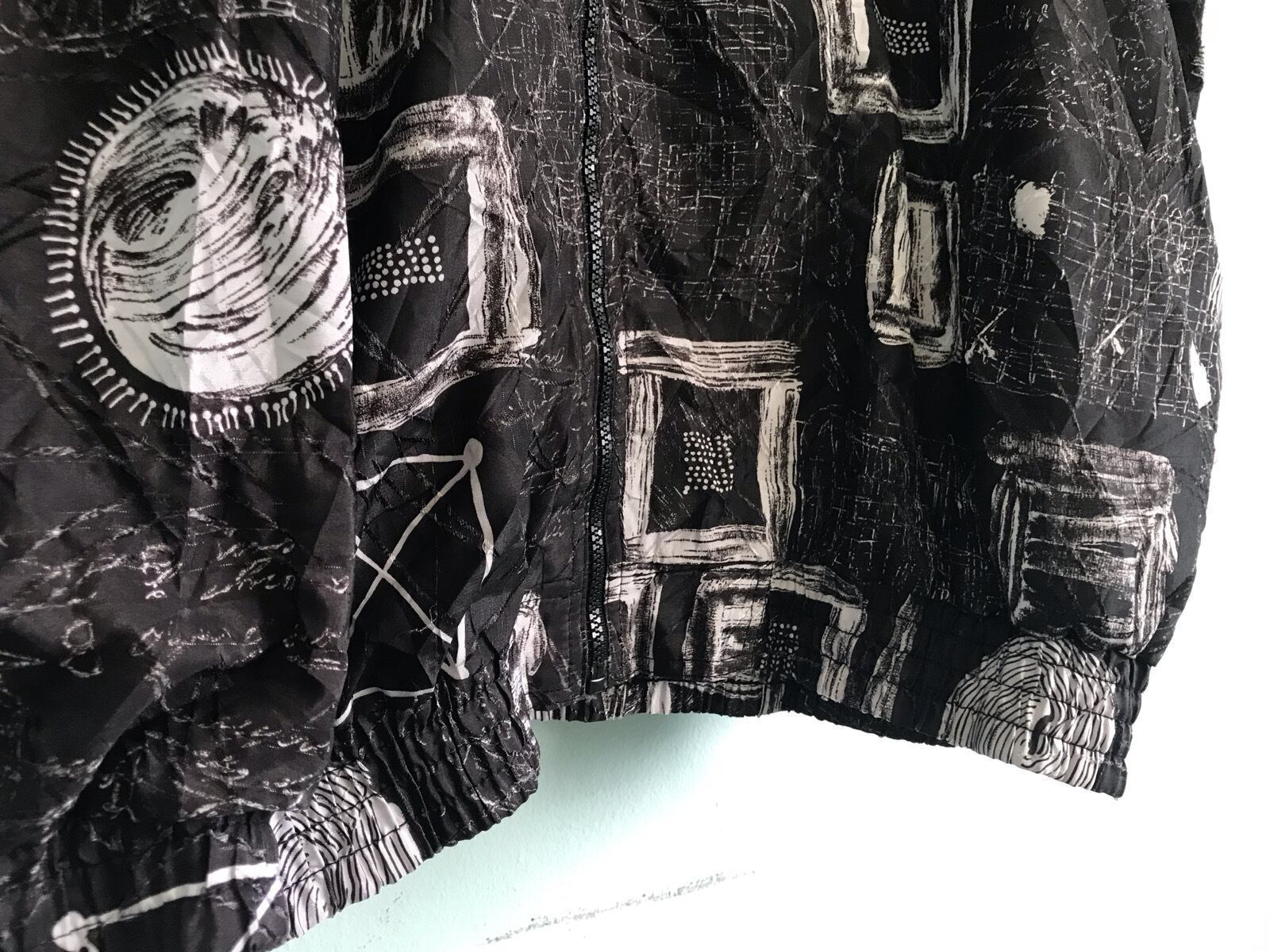 【 80s - 90s USA 古着 ★ 物理柄 】 physics formula design jacket - used, vintage / 幾何学 図形 ポリエステル製 総柄ジャケット ブルゾン ナイロンジャケット系 ゆったり ゆるだぼ オーバーサイズ メンズ XXL アウター ヴィンテージ レトロ 宇宙 メンズ 秋物 冬物