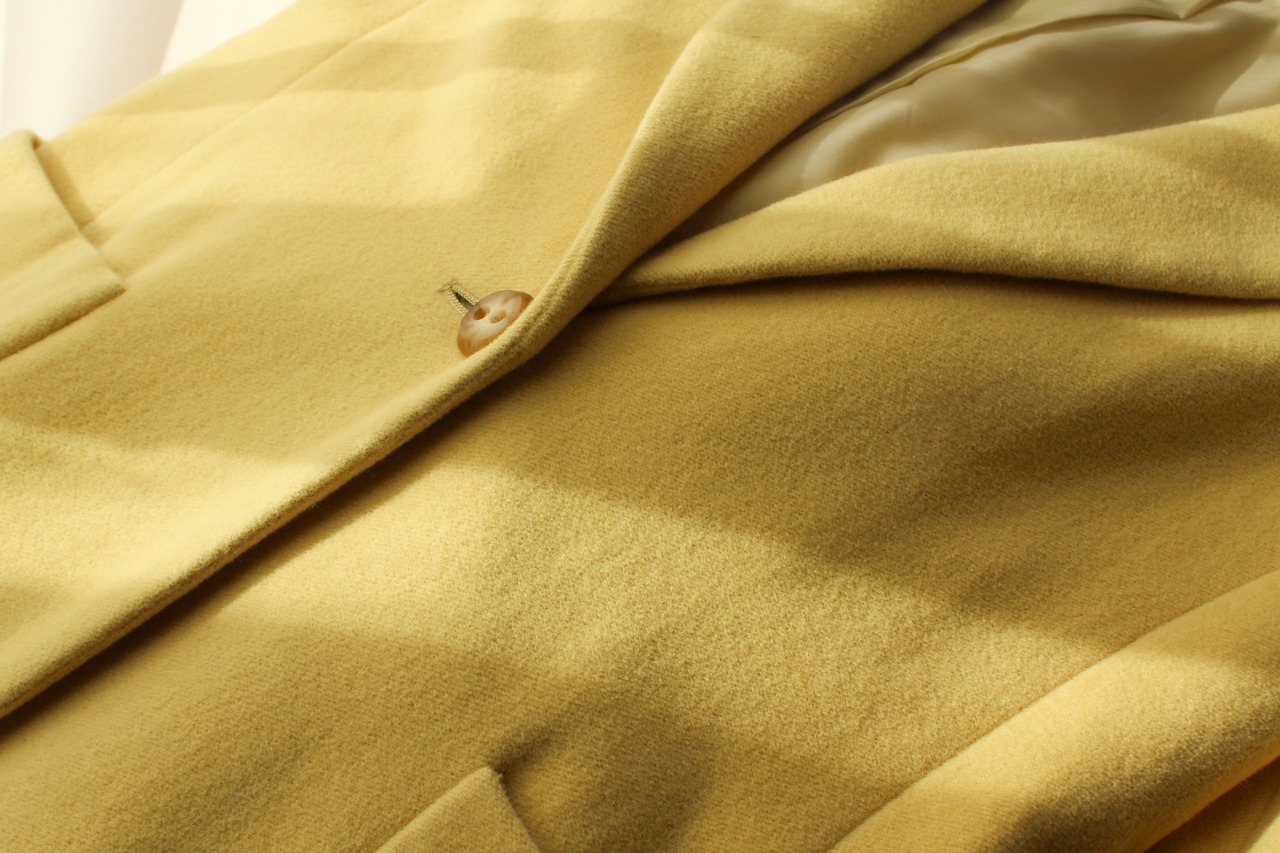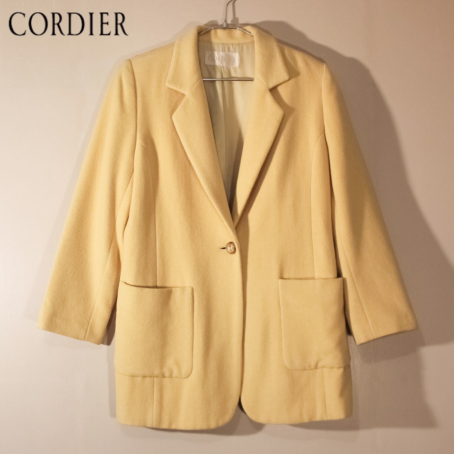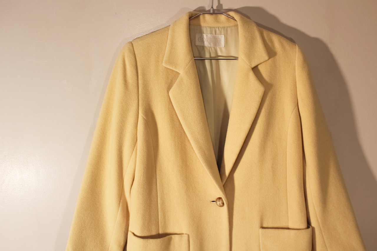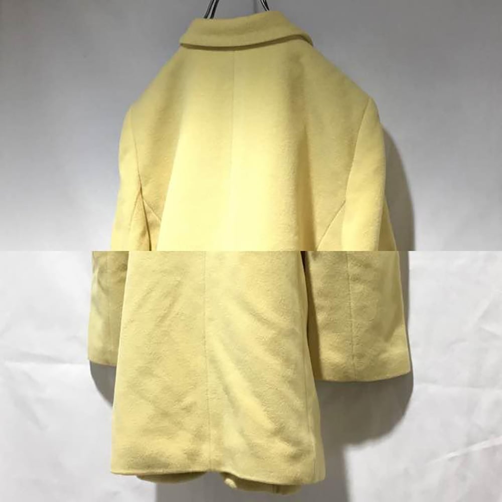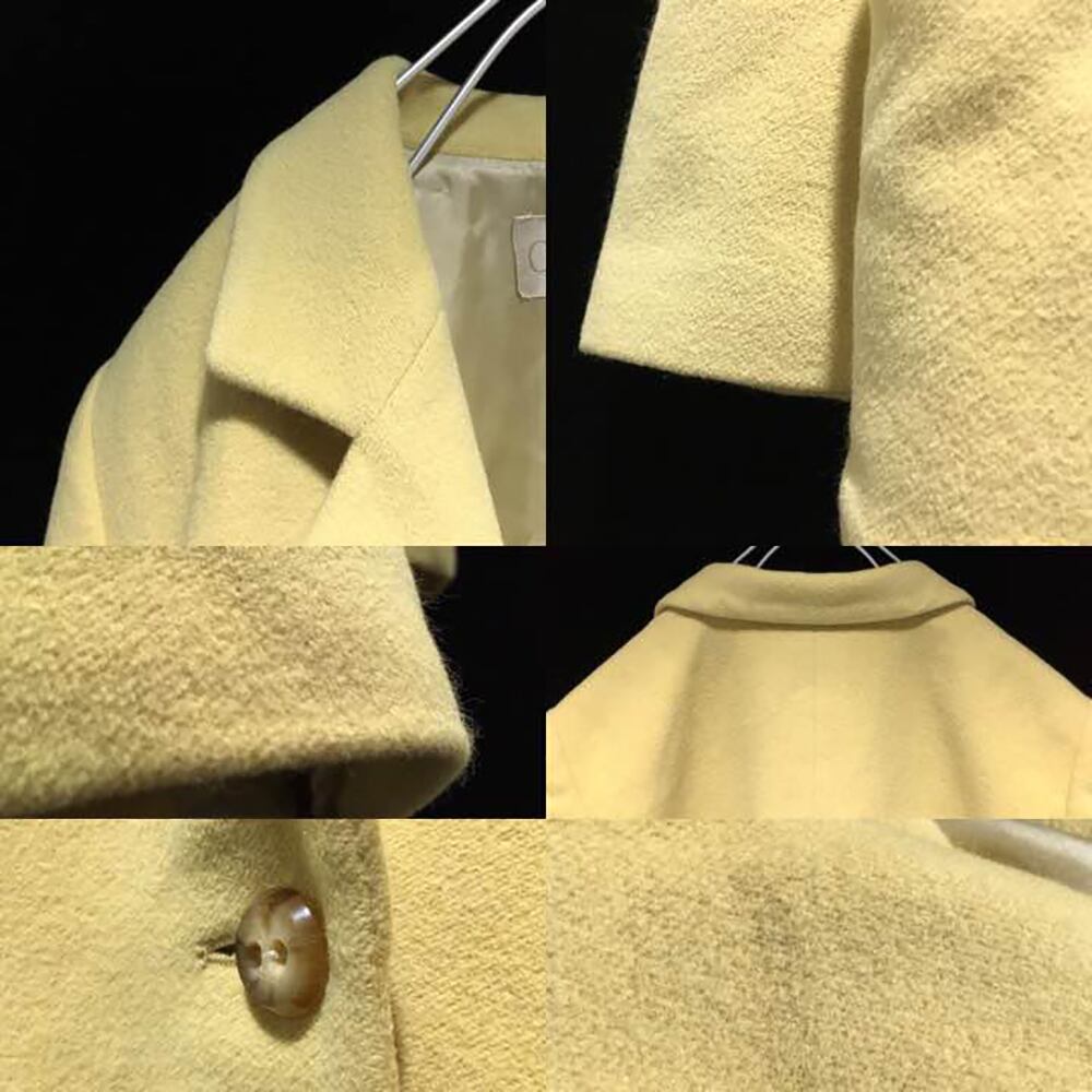 【 希少 90年代 高級古着 ★ アンゴラコート 】 90s CORDIER Angora mix tailored wool coat yellow, used vintage, Japan made - コルディア テーラードコート 日本製 アンゴラ混 ショート丈 ウール レディース M ヴィンテージ古着
