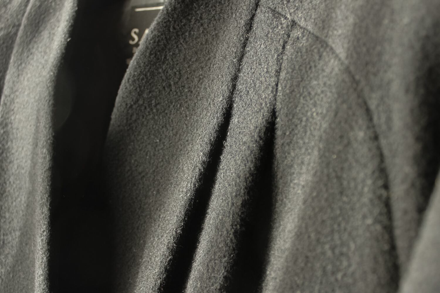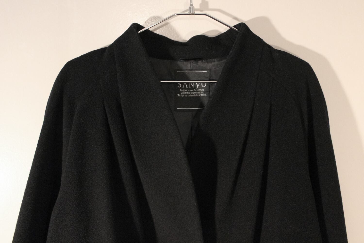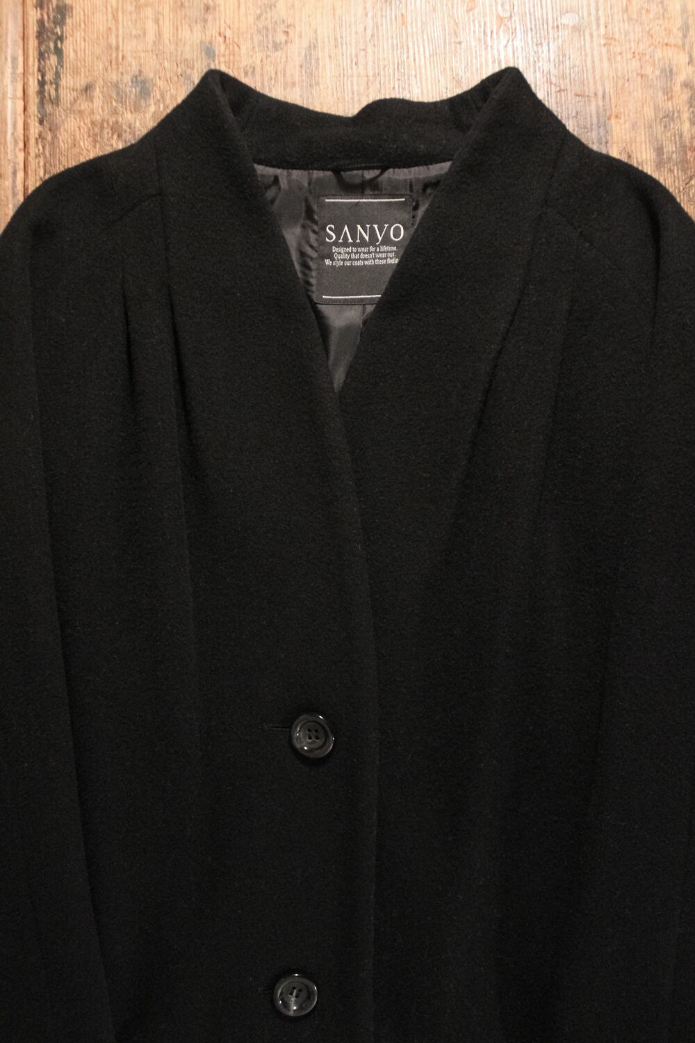 80年代〜90年代のオールドSANYOのノーカラーウールコート。三陽商会は1943年生まれの老舗中の老舗企業で、バーバリーやマッキントッシュといったハイブランドのライセンス販売でも有名なハイブランド。