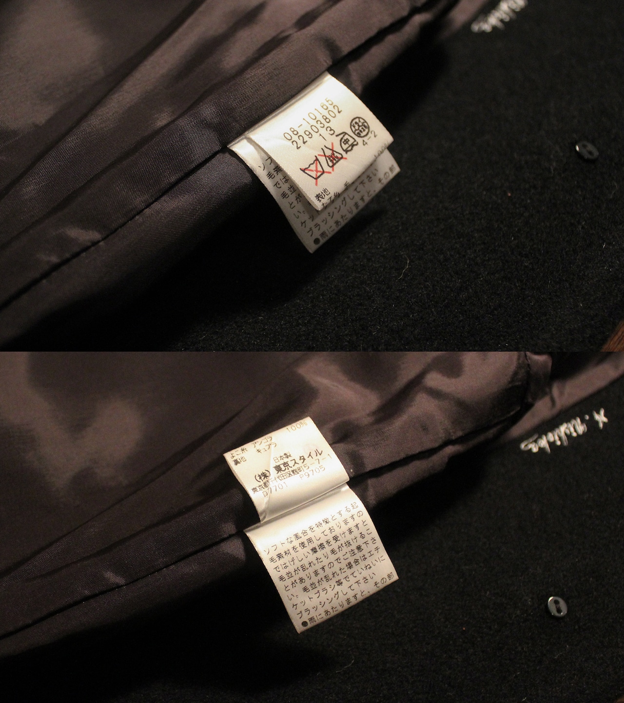 東京スタイル製のアンゴラウールコートです。現在は、企業としてはサンエー・インターナショナルに移管されてますが、戦後日本のアパレル産業を率いてきたレナウンやオンワード樫山そして三陽商会といった面々に連なる老舗企業。