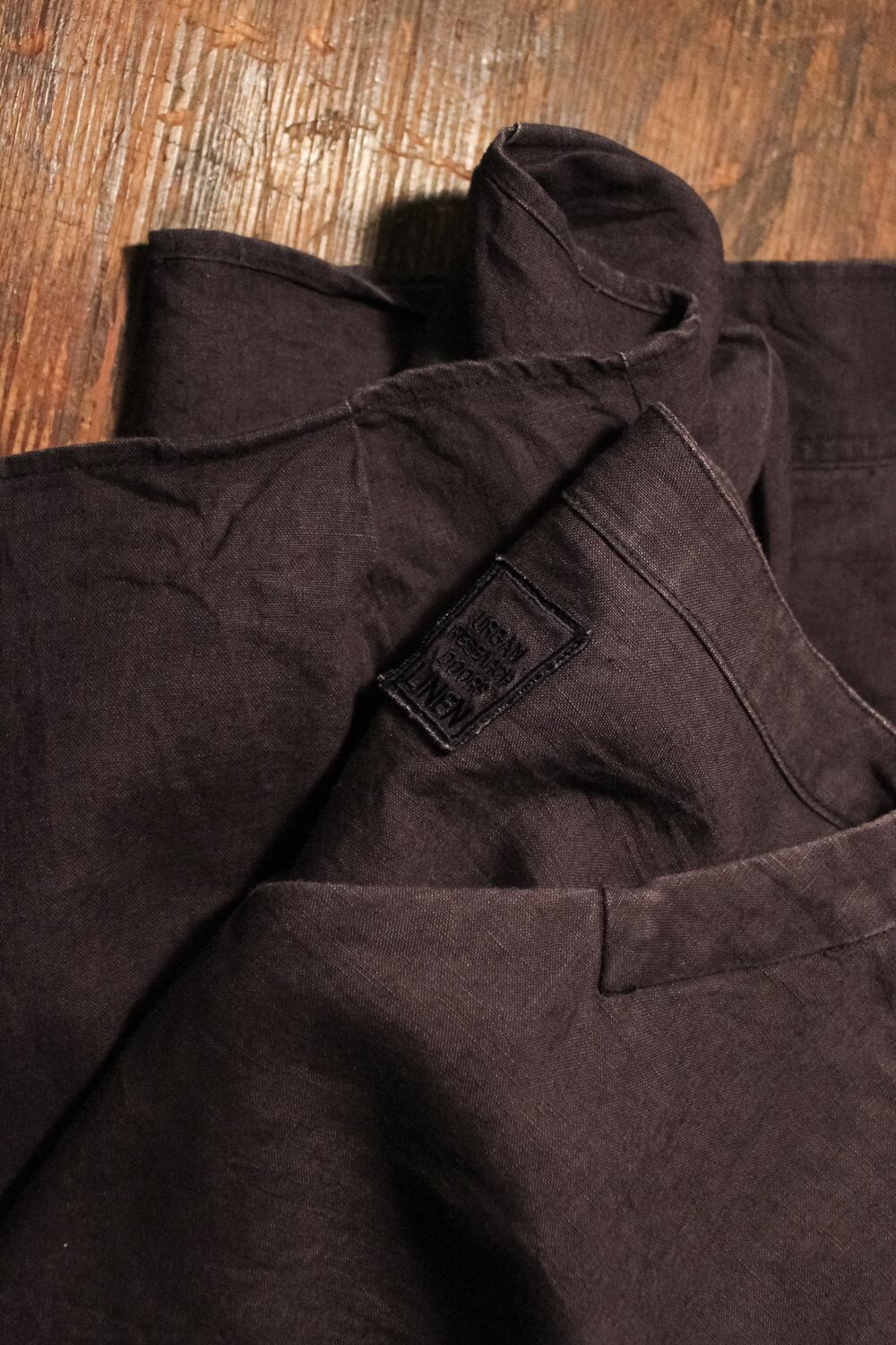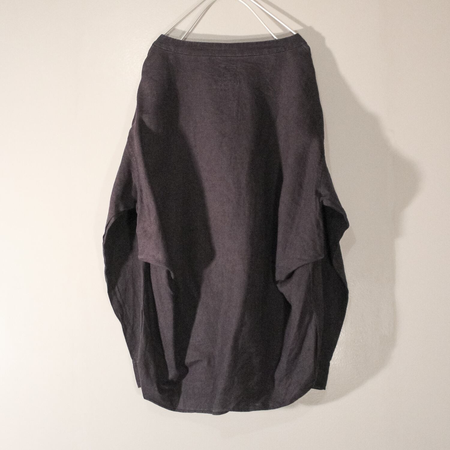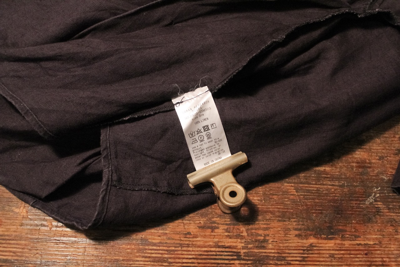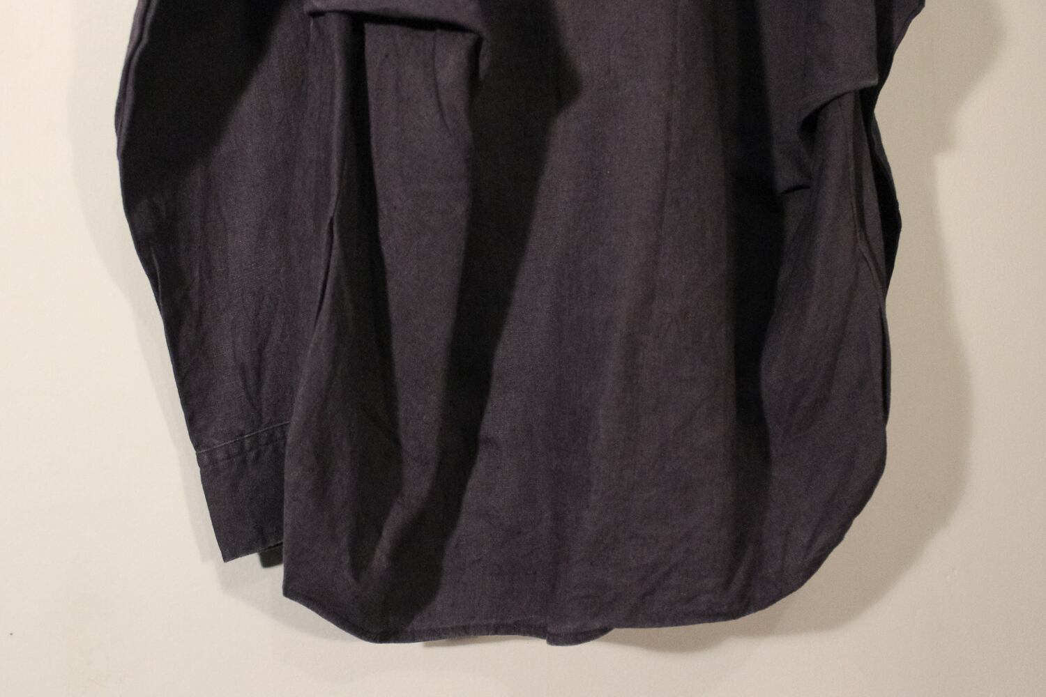 リネン製のプルオーバーシャツです。立体感のあるシルエット。リネン特有の生地が季節感を表現します。ざらりとした不均一な表面、「全てが均一」でない染色具合は原材料由来の特徴であり味でもありますが、傷ではありません。ワンサイズとの表記があるので、元来はレディースかも知れませんが、ユニセックスでどうぞ(必ず実寸をご確認下さい)。使用感はあまり感じられません。