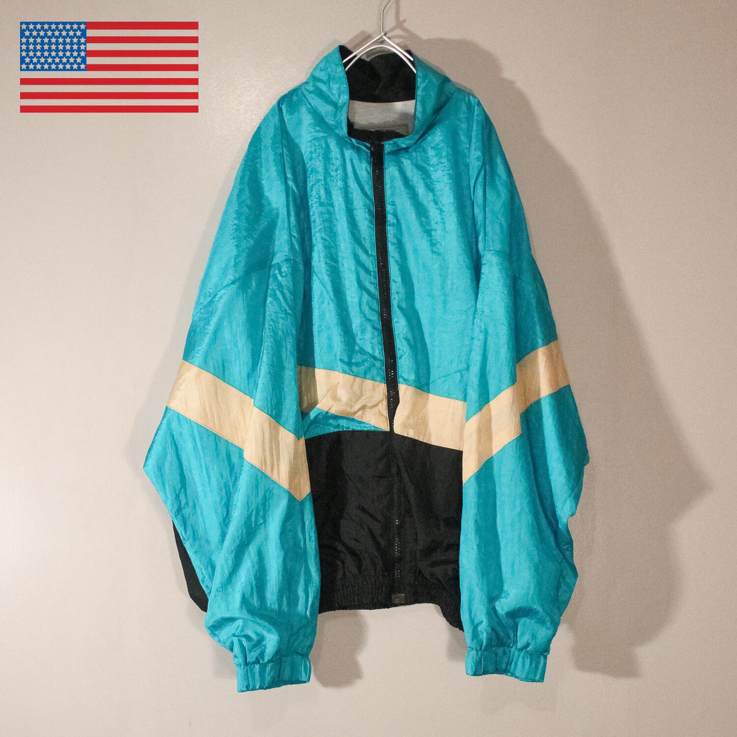 【 90s USA古着 ★ JKT 】vivid emerald green oversized nylon jacket - used, vintage [ レトロ / エメラルドグリーン ] ナイロンジャケット ブルゾン ウィンドブレーカー | ゆったり ゆるだぼ オーバーサイズ メンズ レディース XL アウター ヴィンテージ