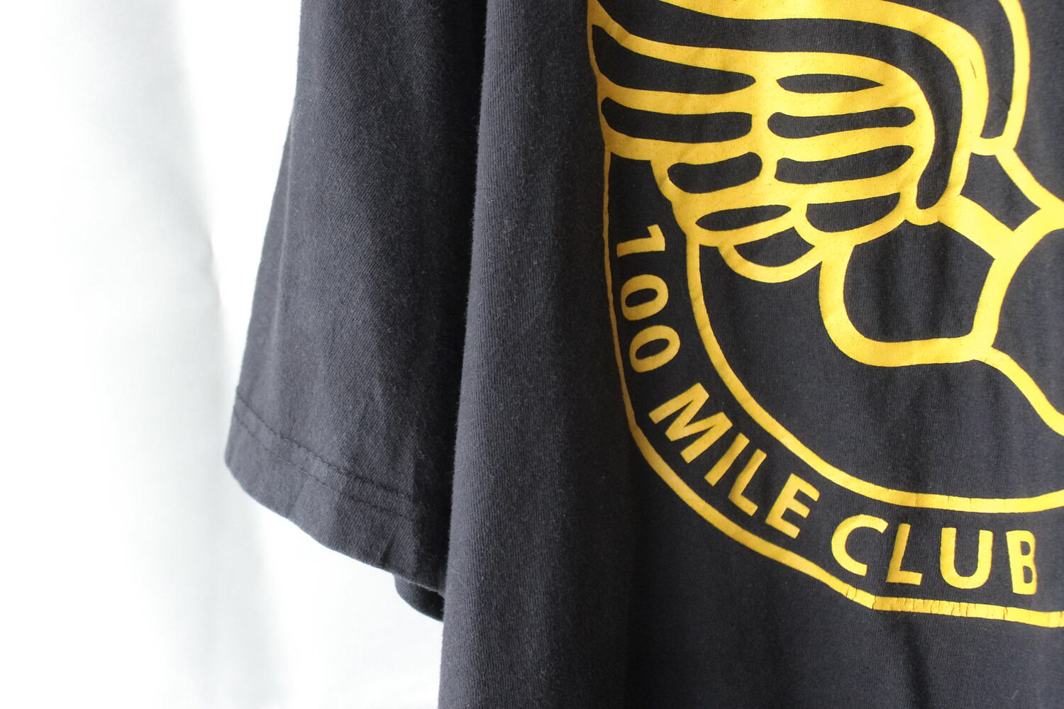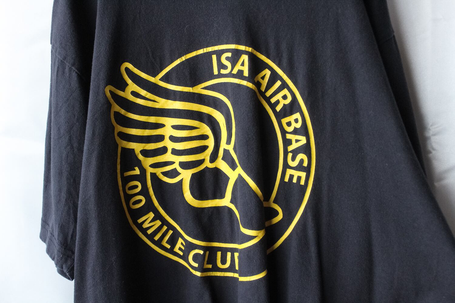 バーレーン空軍基地(ISA AIR BASE)とカナダ発祥の100 mile clubのコラボTシャツです。インド製。