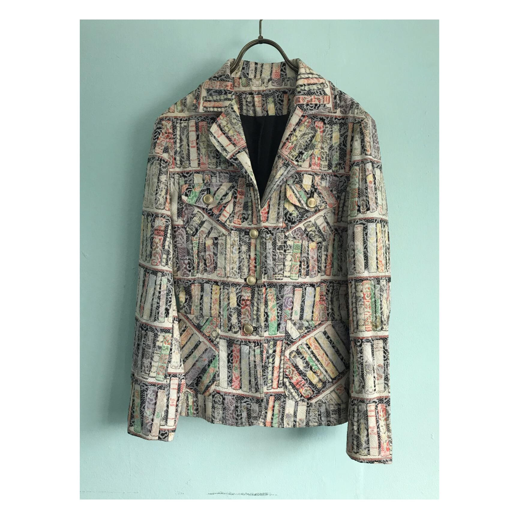 【 美品 ★ 書籍柄 】 book design fancy tailored jacket / mens ladies, used [ 韓国古着 ] 本 哲学 テーラードジャケット アウター メンズ レディース XS ヴィンテージ古着