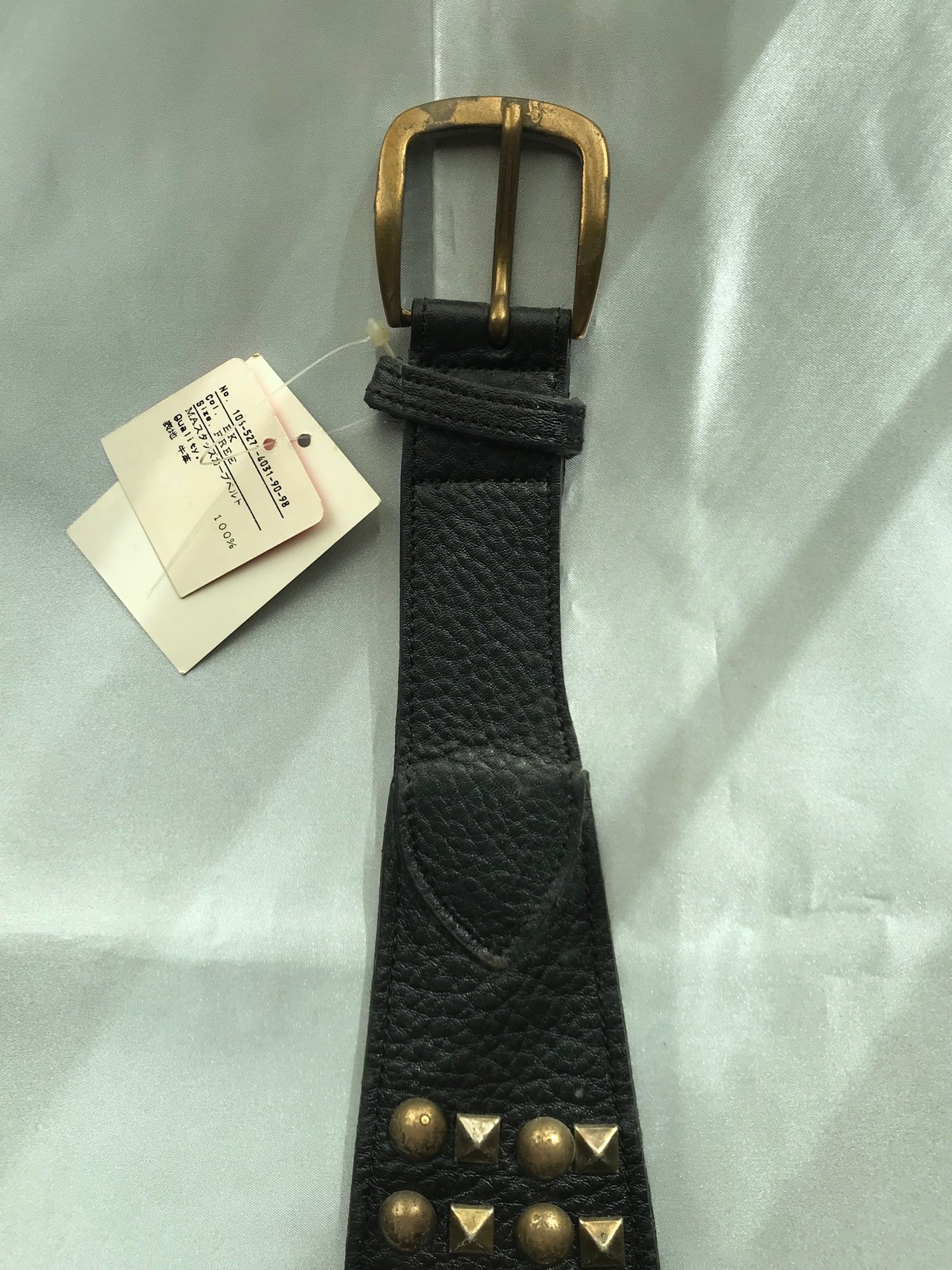 #デッドストック のタグ付き、#未使用品 。#本革 の #レザースタッズベルト です。#ハイウエストベルト や #レザーコルセット 、#サッシュベルト としても使えそうです。一個です。