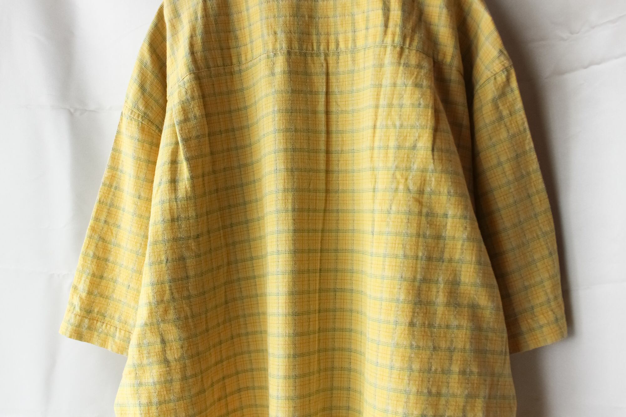 【 90s 日本製 ★ チェック柄 】 goose & gander plaid yellow shirt - used, vintage, made in Japan [ 黄色 / オーバーサイズ ] 90年代 刺繍 チェック柄シャツ BDシャツ ゆったり ゆるだぼ 半袖 XXL メンズ ヴィンテージ古着 フランスブランド