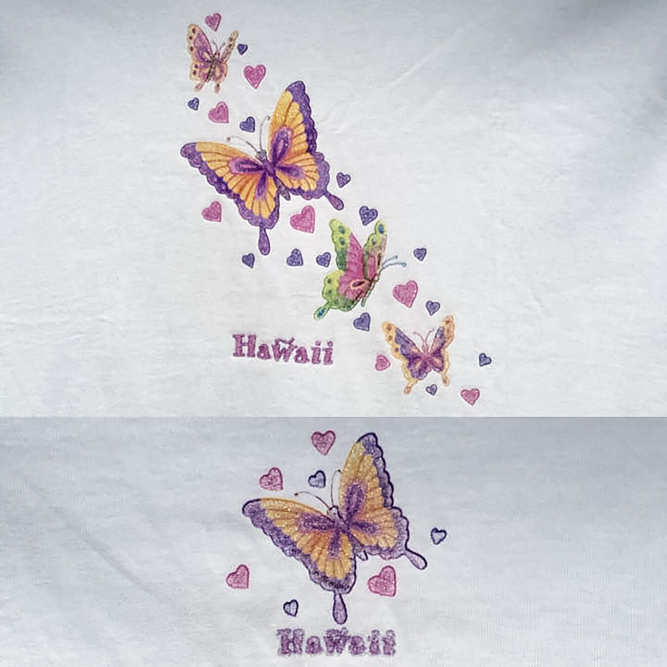 【 美品 USA古着 ★ ハワイ 】 Hawaii Kawaii oversized Tee shirt - ladies used [ 海外古着 / メキシコ製 ] 南国 蝶々 チョウ 白Tシャツ Tシャツワンピ 半袖 レディース XL XXL トップス アメリカ古着