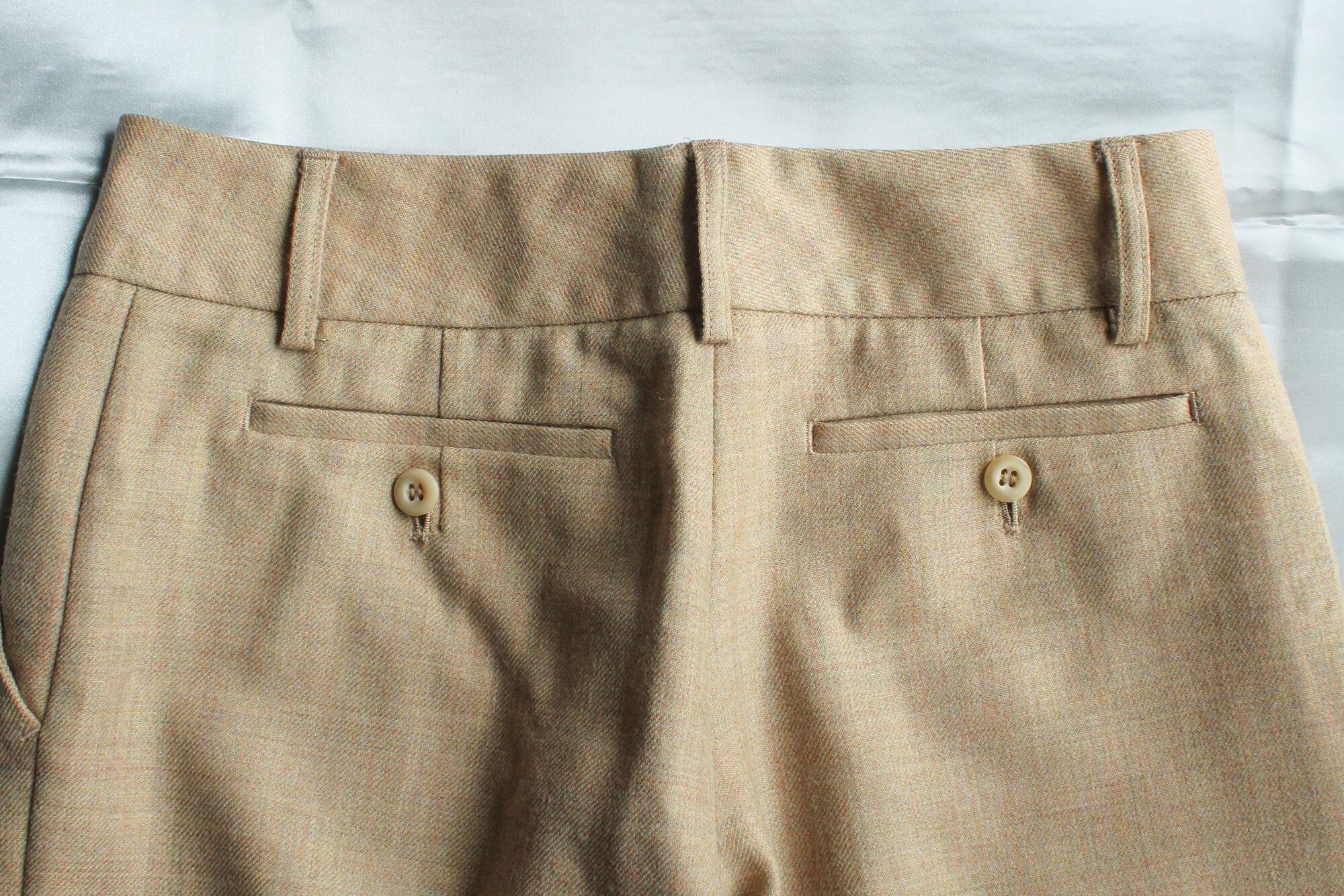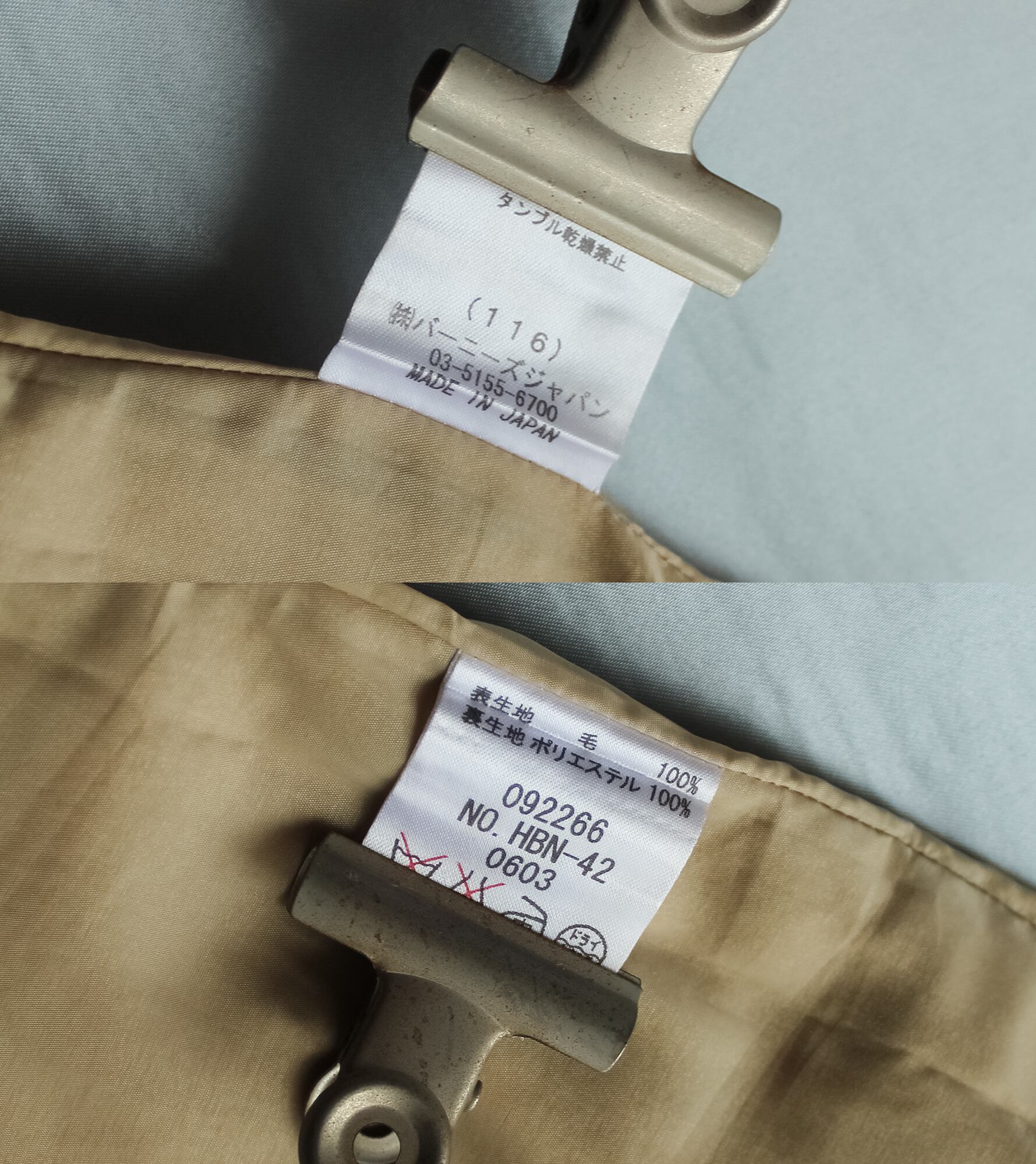 ◉ 画像5-9は曇天時に自然光で撮影したものですが、実際はもう少し明るい色に感じられるかもしれません。豊かなベージュ色で、良い色味です。ウールが使用されており、高級感があります。実際に高級ブランドなので新品定価で3万円前後くらいはしたのではないかと思います。