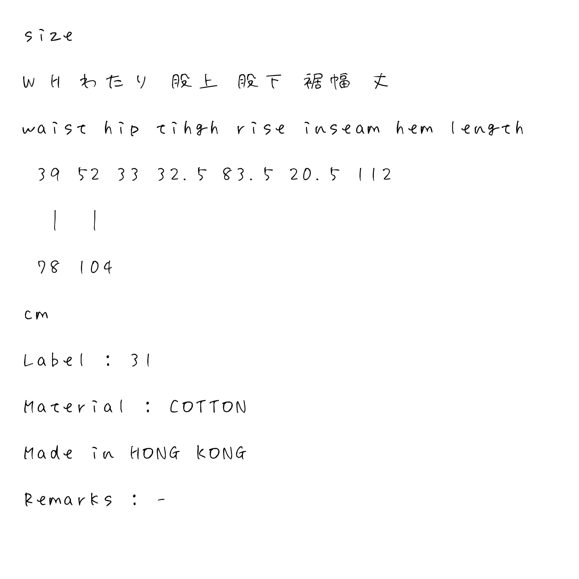 ワタリが33.5と数値的にはセミワイドくらいの太さですが、丈がけっこう長いため裾が弛み、まあまあ太く見えます。