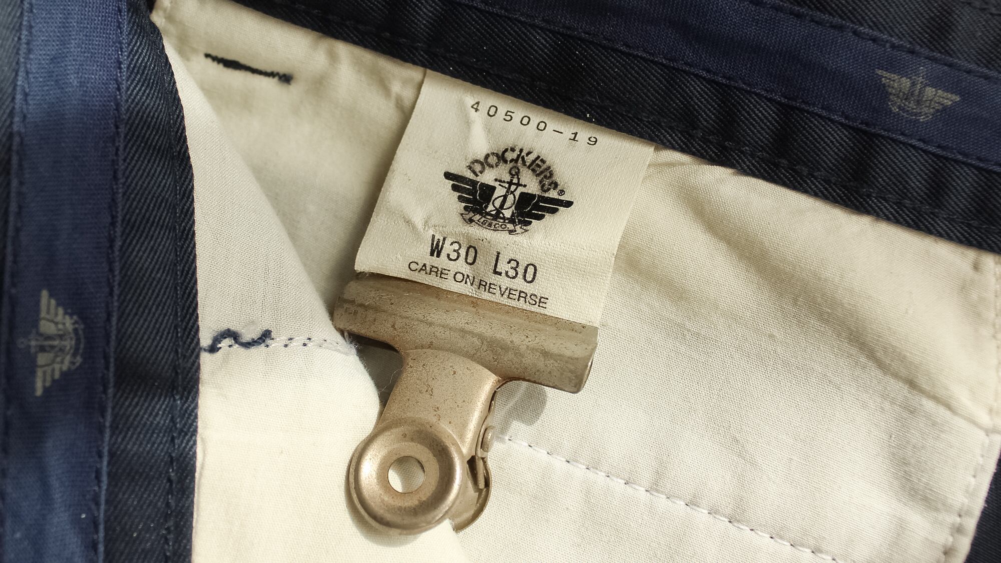 90s Old Dockers navy blue chino pants - mens used, vintage [ ビンテージ古着 ] ネイビー 2タックチノパンツ センタープレス ワイドチノ W30 メンズ S-M ツータック 紺色 ボトムス