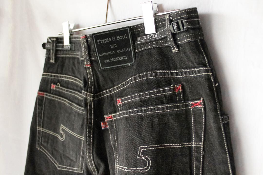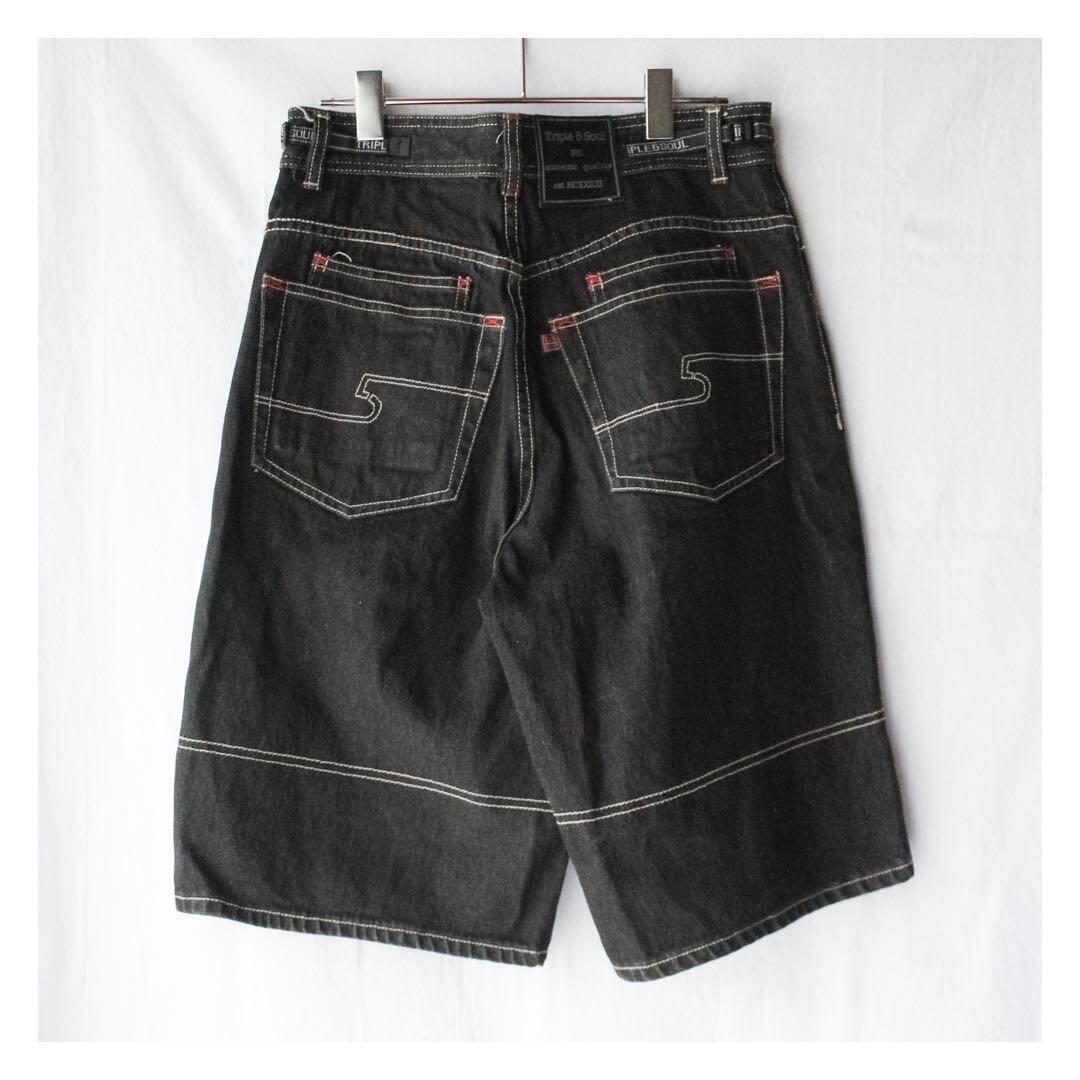 00s triple 5 soul black short pants / men’s used archive[ W30 ブラック ] トリプルファイブソウル バギーショーツ 短パン ハーフパンツ 極太 ワイドデニム 黒 メンズ M