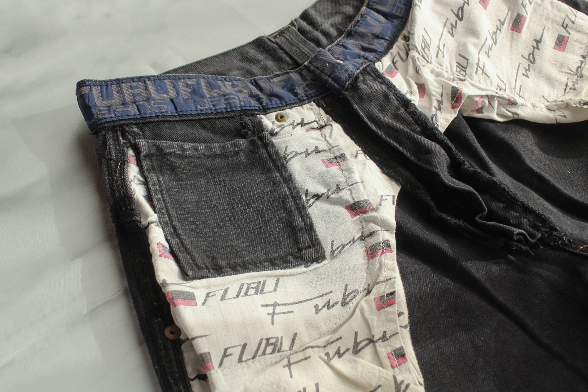 90s 00s FUBU baggy tempered black denim pants