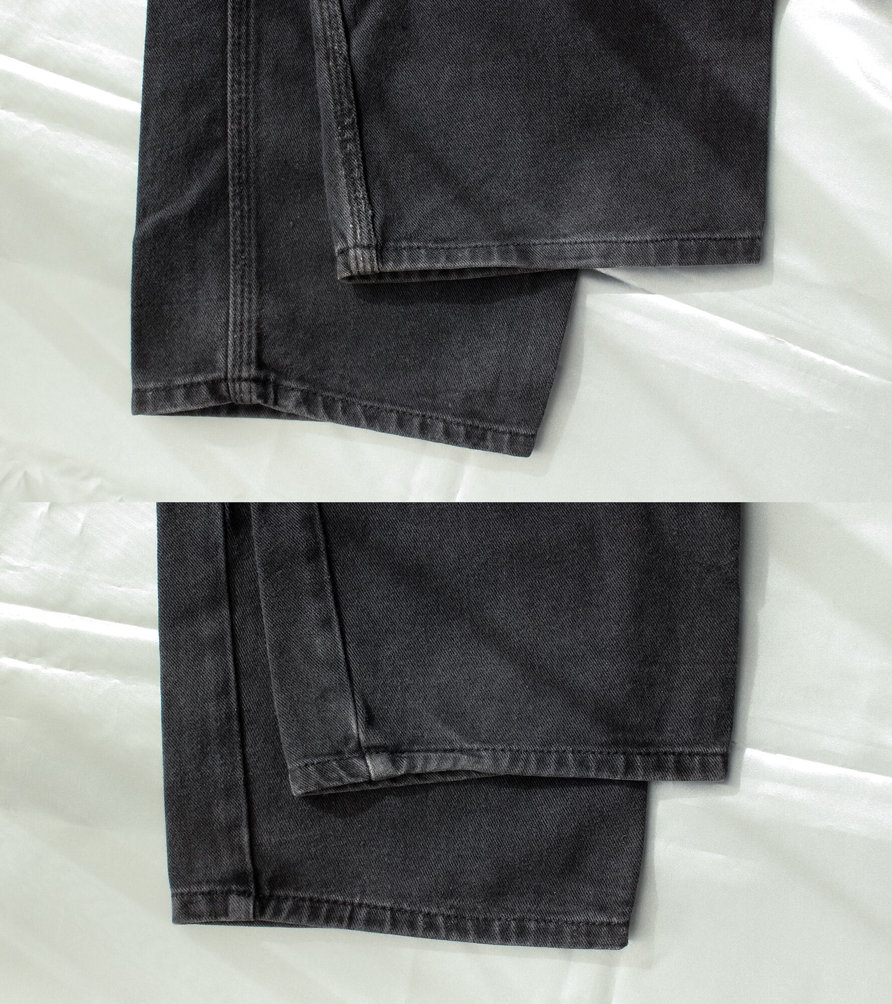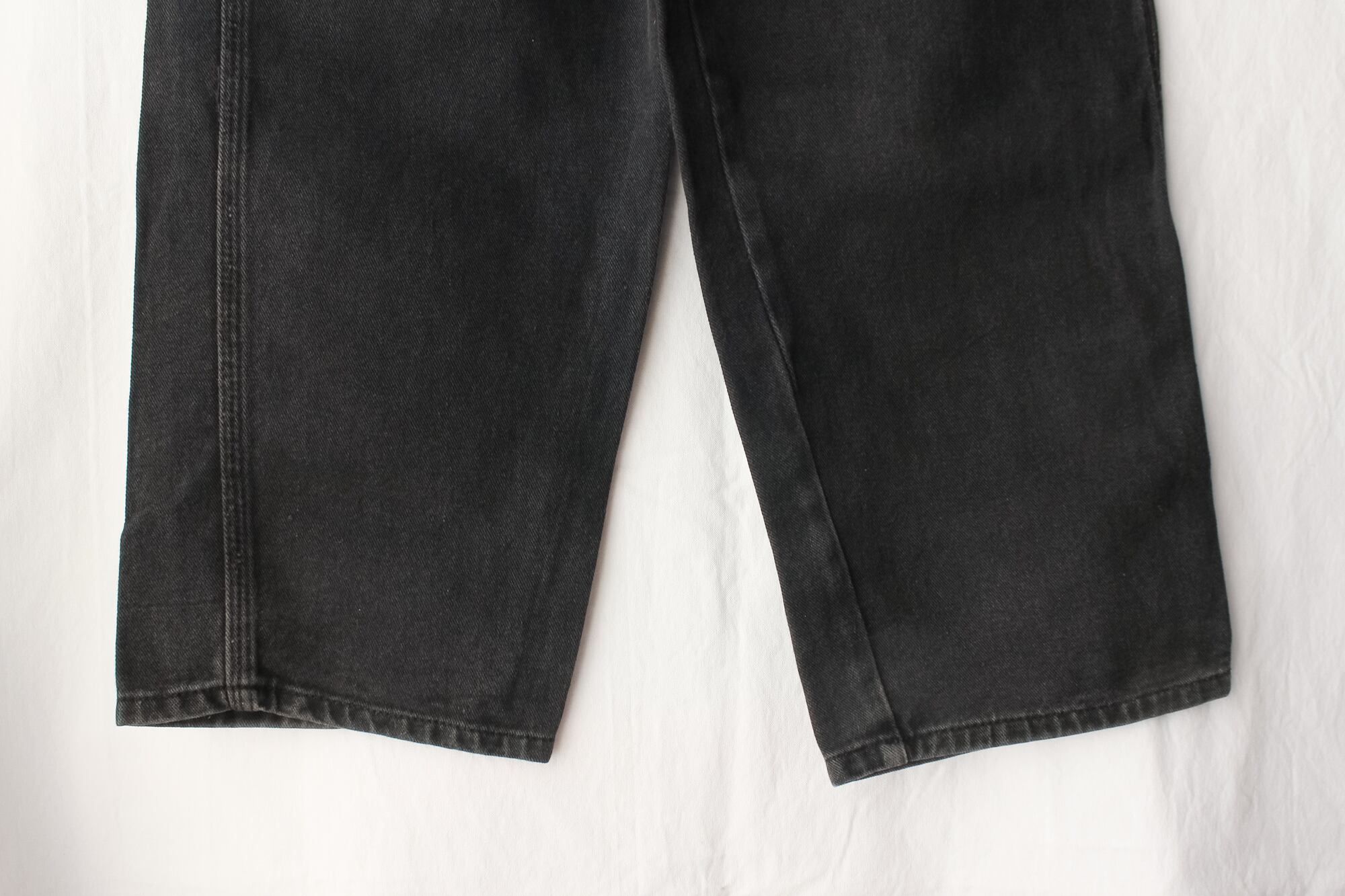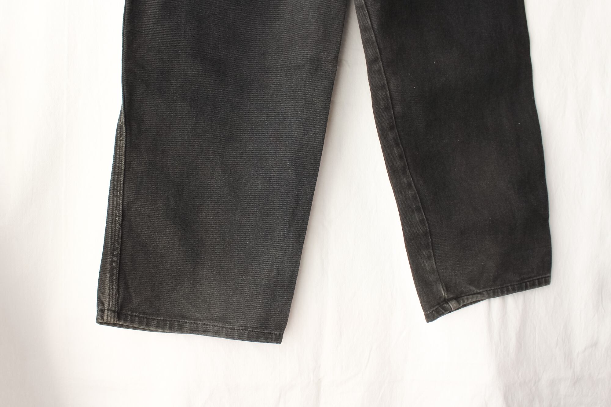 バギーでありながらテーパードががかった綺麗なシルエット、スッキリとした丈の長さ。適切なウエストのサイズ感。ヴィンテージならではの熟成されたウォッシュドブラック。