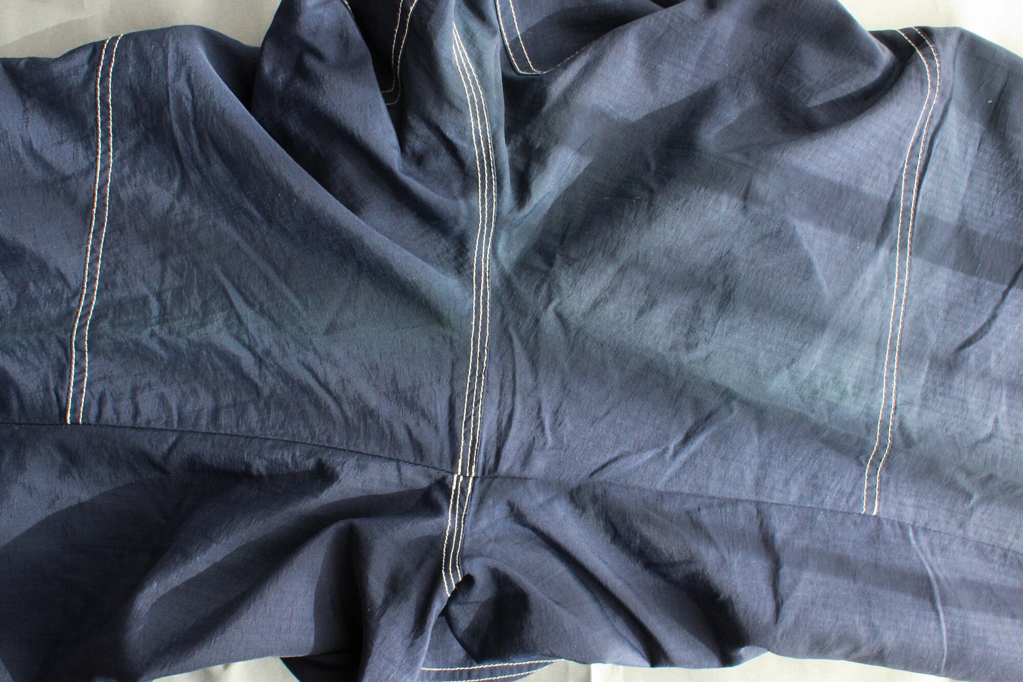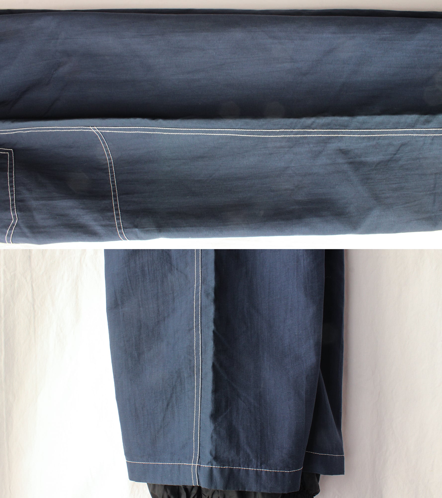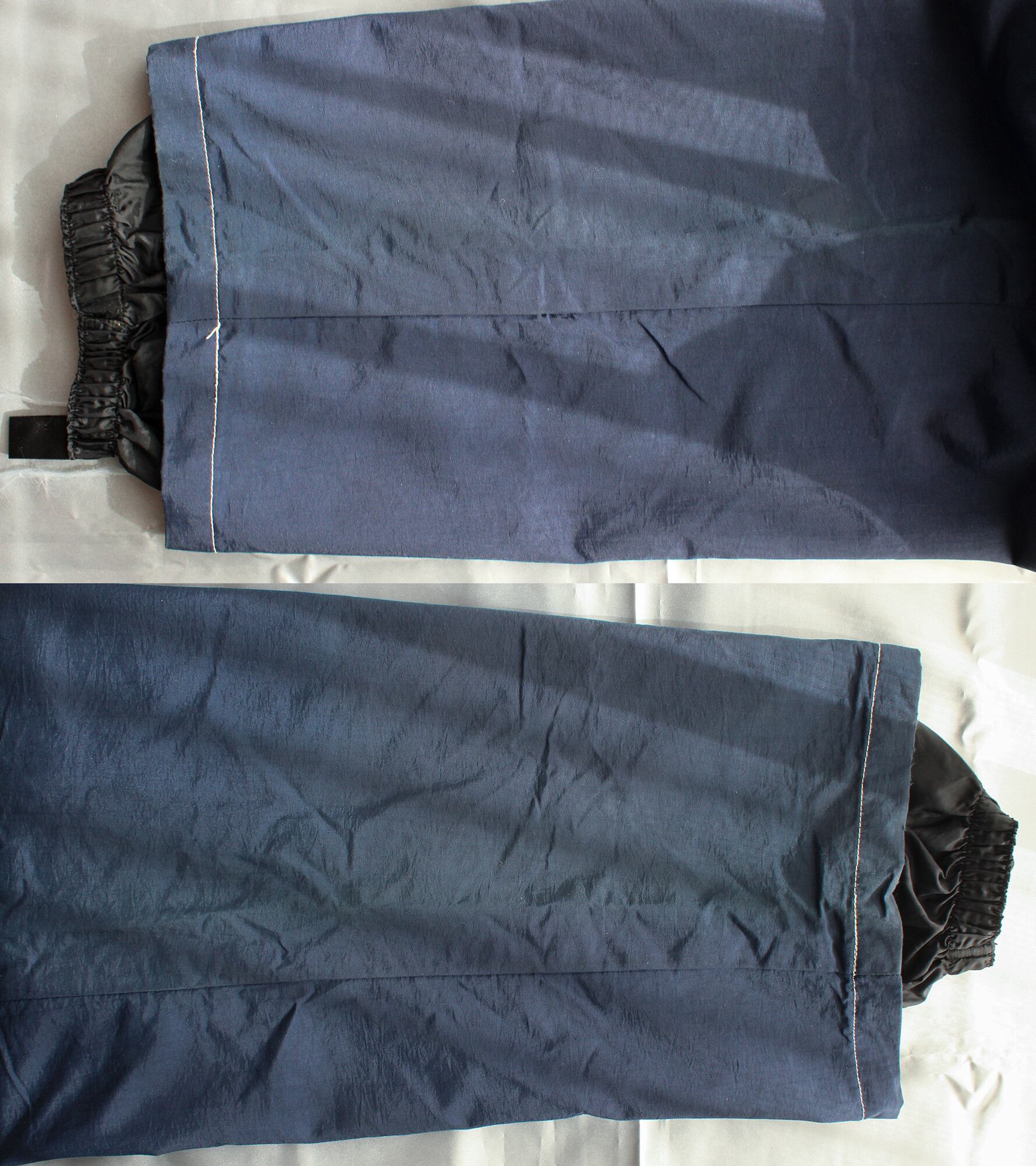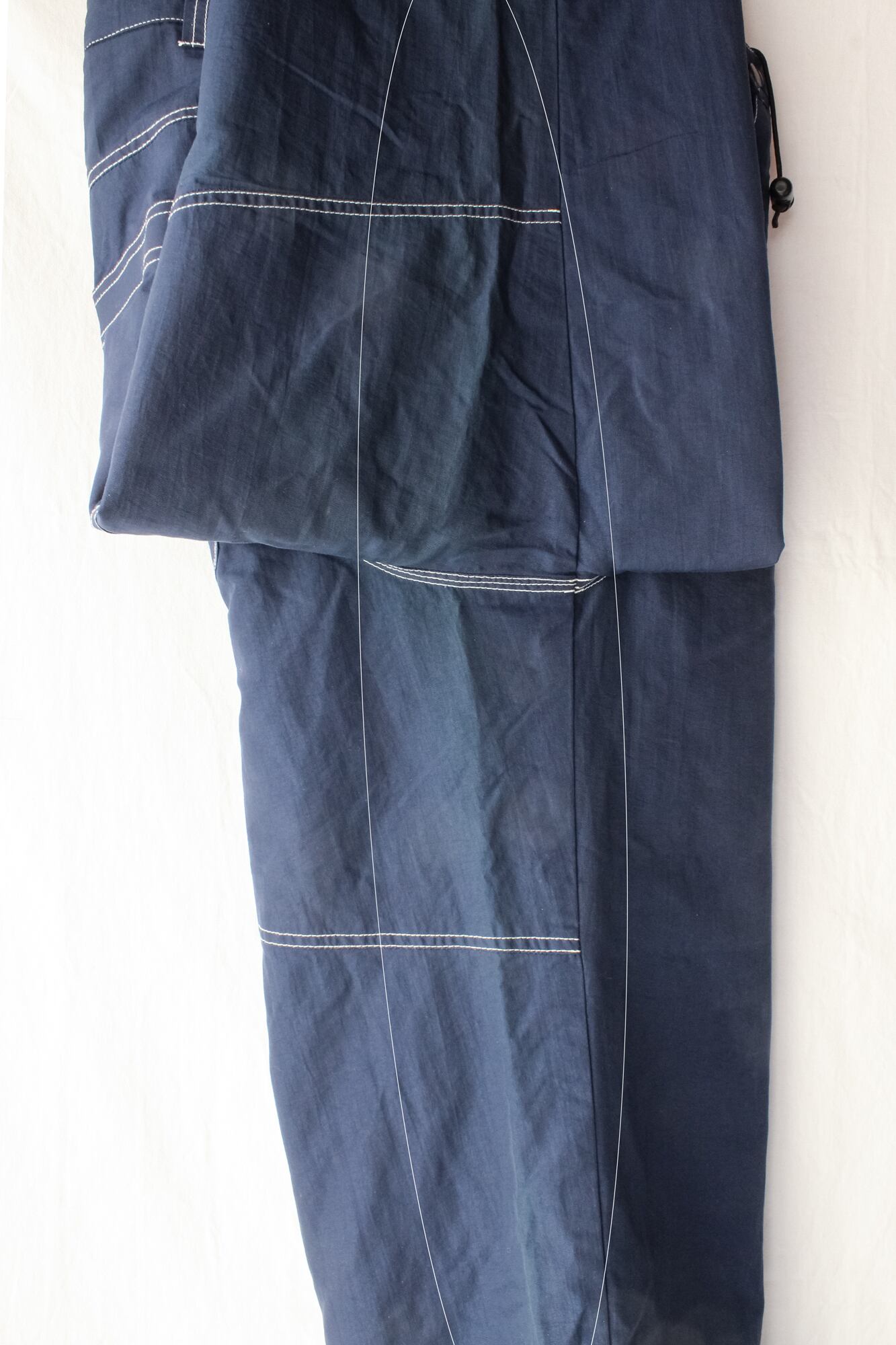 ①両足の内側外側両サイドと股下の辺りにかけて、薄く退色があります。