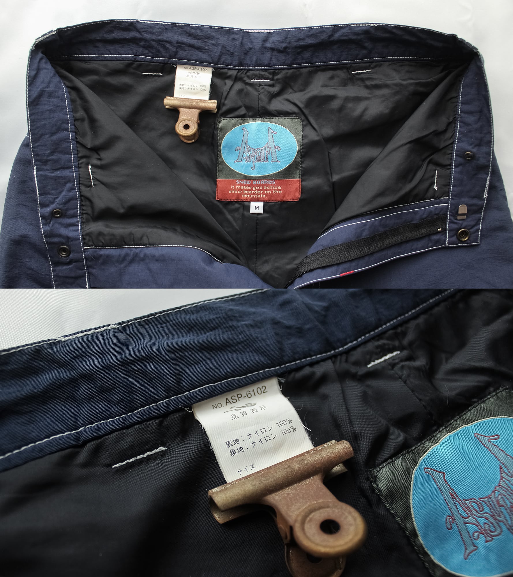 【 極太 】 90s Snowbords Baggy Pants スノボーバギーパンツ ナイロン ワイドパンツ 紺色 ネイビー M メンズ ストリート HIPHOP スノーボード ビンテージ古着